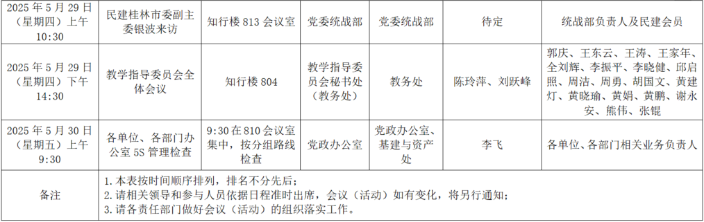 2025年春季学期第十五周全校性会议活动安排表