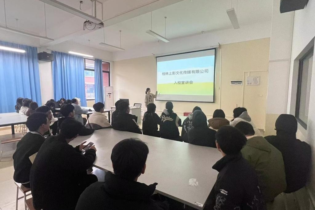 近日,桂林上影文化传媒有限公司莅临太阳集团,于创意设计学院E413教室举行了一场精彩的招聘宣讲会,动画、数字媒体艺术学生参加了本次宣讲会。此次宣讲会旨在加深我院师生对桂林上影文化传媒有限公司的了解,为即将步入社会的毕业生提供优质的就业选择,同时也为企业选拔优秀人才搭建了一个良好的平台。