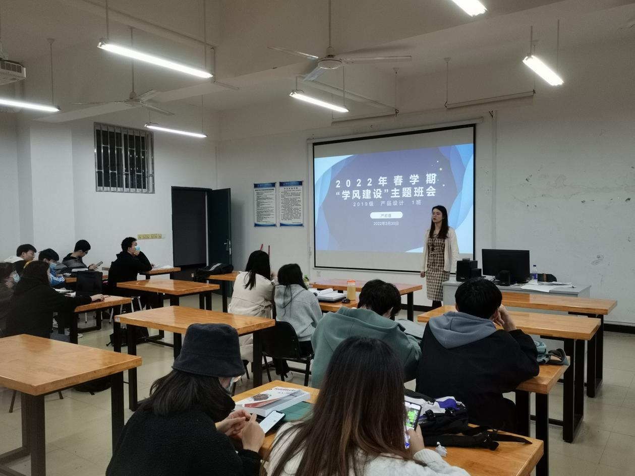 设计系19级产品设计一班于2022年3月30日在41205开展“携手互助,共建学风”主题班会,由班主任严若瑾老师给班级全体学生开展此次班会活动。
