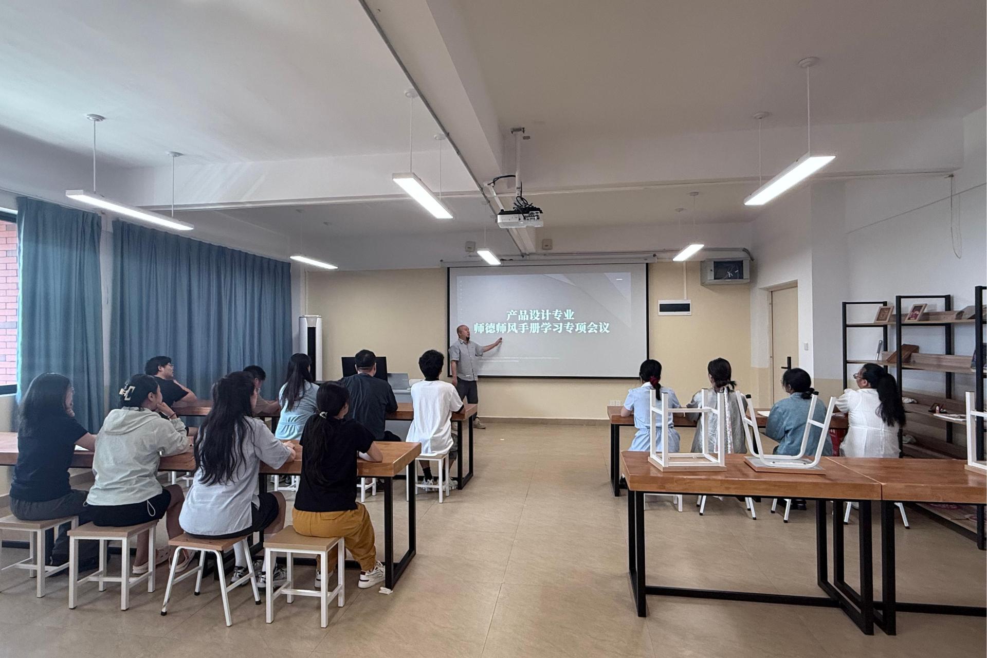 7月16日下午,产品设计教研室在学院会议室进行师德师风学习手册集中学习活动。本次活动由教研室主任苏锐老师主持,教研室全体青年教师参与。