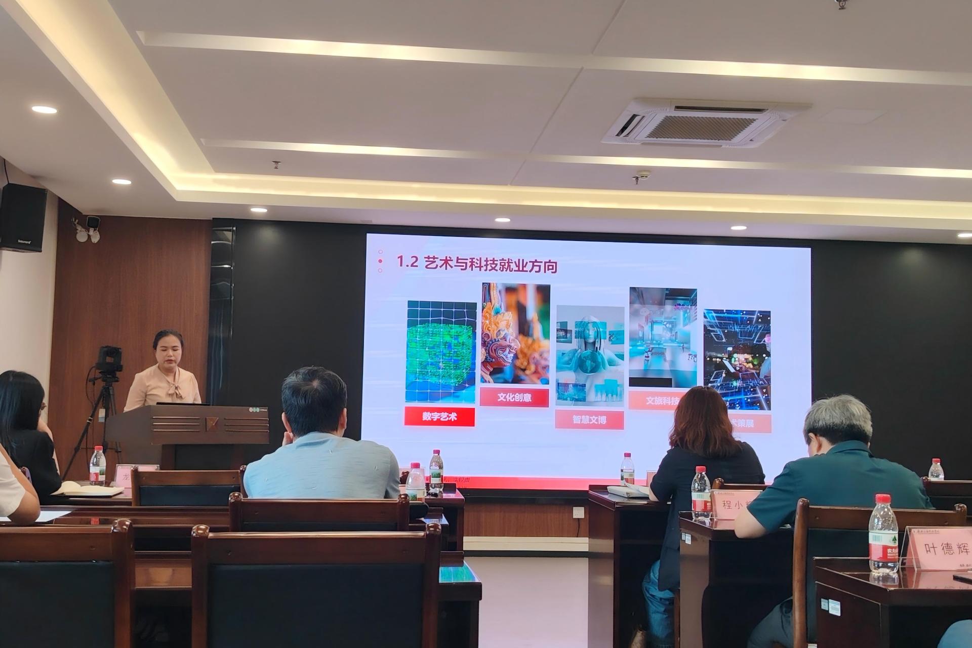会上,创意设计学院智能交互设计教研室主任王柳凤副教授,围绕“艺术与科技”新增专业的申报背景、专业定位、人才需求调研、申报基础与优势、人才培养方案等方面进行了详细汇报。该专业旨在融合艺术设计与前沿科技,培养具备跨学科思维、创新能力和实践能力的复合型人才,服务于数字艺术、文化创意、文旅科技、艺术策展等新兴领域的发展需求。