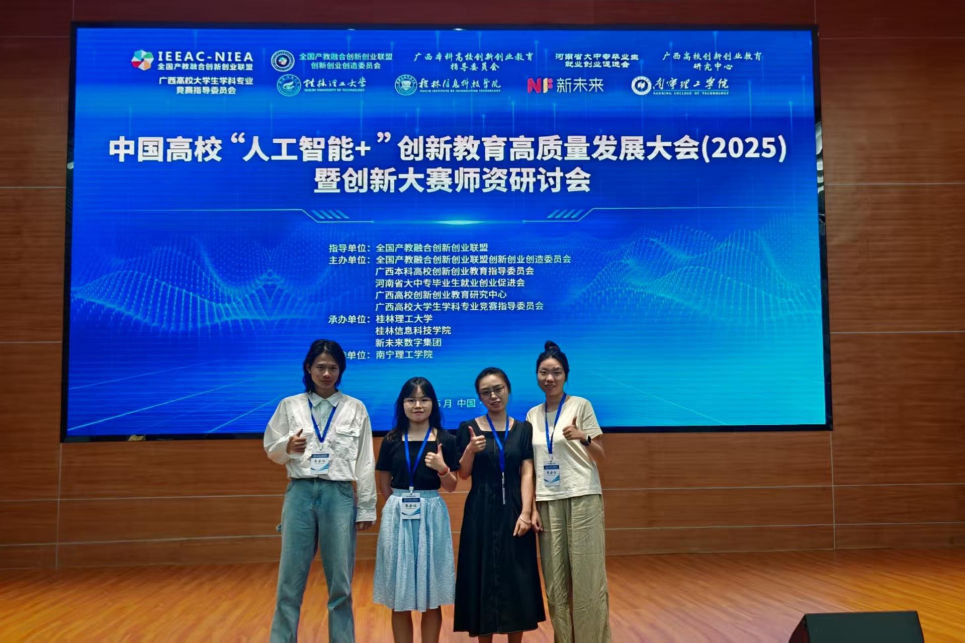 为促进教师专业发展,提升“人工智能+”创新教育水平,太阳集团tcy8722网站创意设计学院组织优秀青年教师丘智科、张柳芝、王程怡、兰静超前往桂林理工大学,参加2025年6月12日至14日举办的中国高校“人工智能+”创新教育高质量发展大会(2025)暨创新大赛师资研讨会。本次会议由全国产教融合创新创业联盟指导,汇聚了众多国内外知名专家学者和教育工作者,共同探讨“人工智能+”时代高校创新教育的新趋势、新模式和新实践。