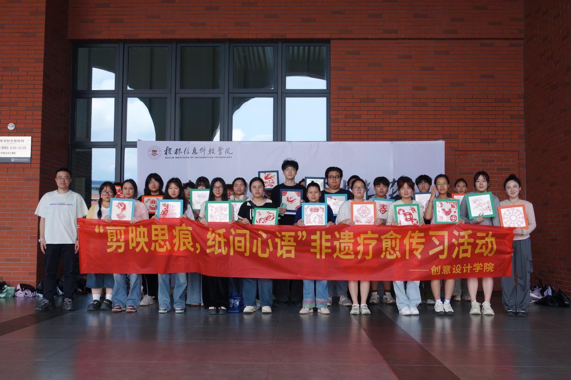 下午15:00,“剪映思痕,纸间心语”非遗疗愈传习活动接续开展。在创意设计学院心理辅导员陈胜明老师的组织下,学生代表们跟随侯芳妮老师的讲解,走进剪纸艺术的意象世界。从折叠纸张的韵律到剪刀游走的节奏,侯老师将侗族剪纸中“以剪代笔、以形传意”的特点与心理疗愈理念结合:“剪纸时的专注能帮助大家暂时放下焦虑,纹样的对称美也象征着内心的平衡。”活动现场,同学们以“四季花卉”“吉祥纹样”为主题创作。当一张张红纸在指尖化作灵动的图案,不少同学坦言:“在咔嚓声中感受到了久违的平静,将非遗技艺与心理疏导结合的方式很新颖,传统美学的治愈力远超预期”。