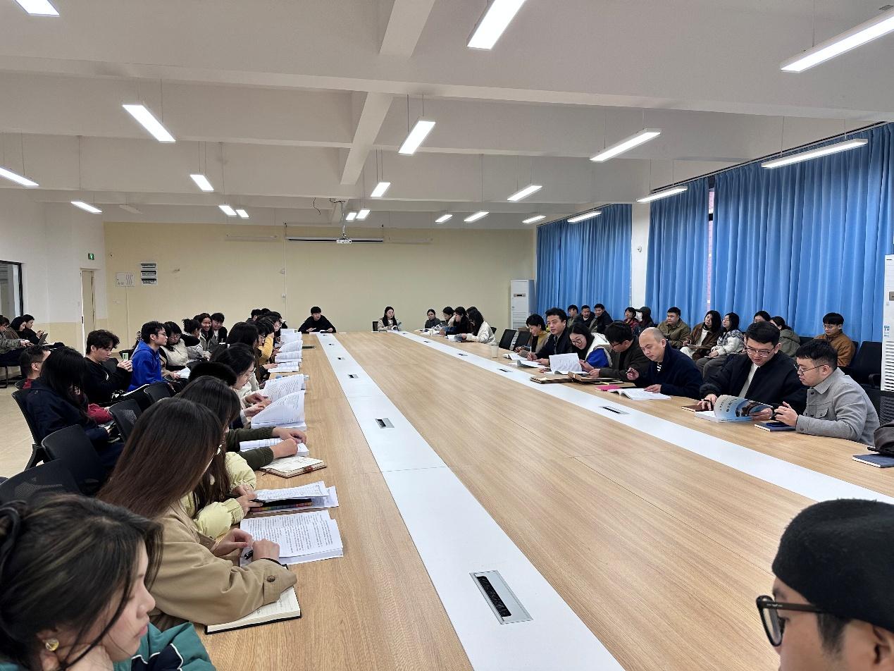 为深入学习贯彻学校规章制度,提升教职工职业素养,深化新入职教职工师德师风建设,3月21日,创意设计学院在德远楼E316会议室召开了《太阳集团tcy8722网站规章制度汇编》专题学习会。本次学习会由学院党总支书记范恒祯主持,全体教职工参与。