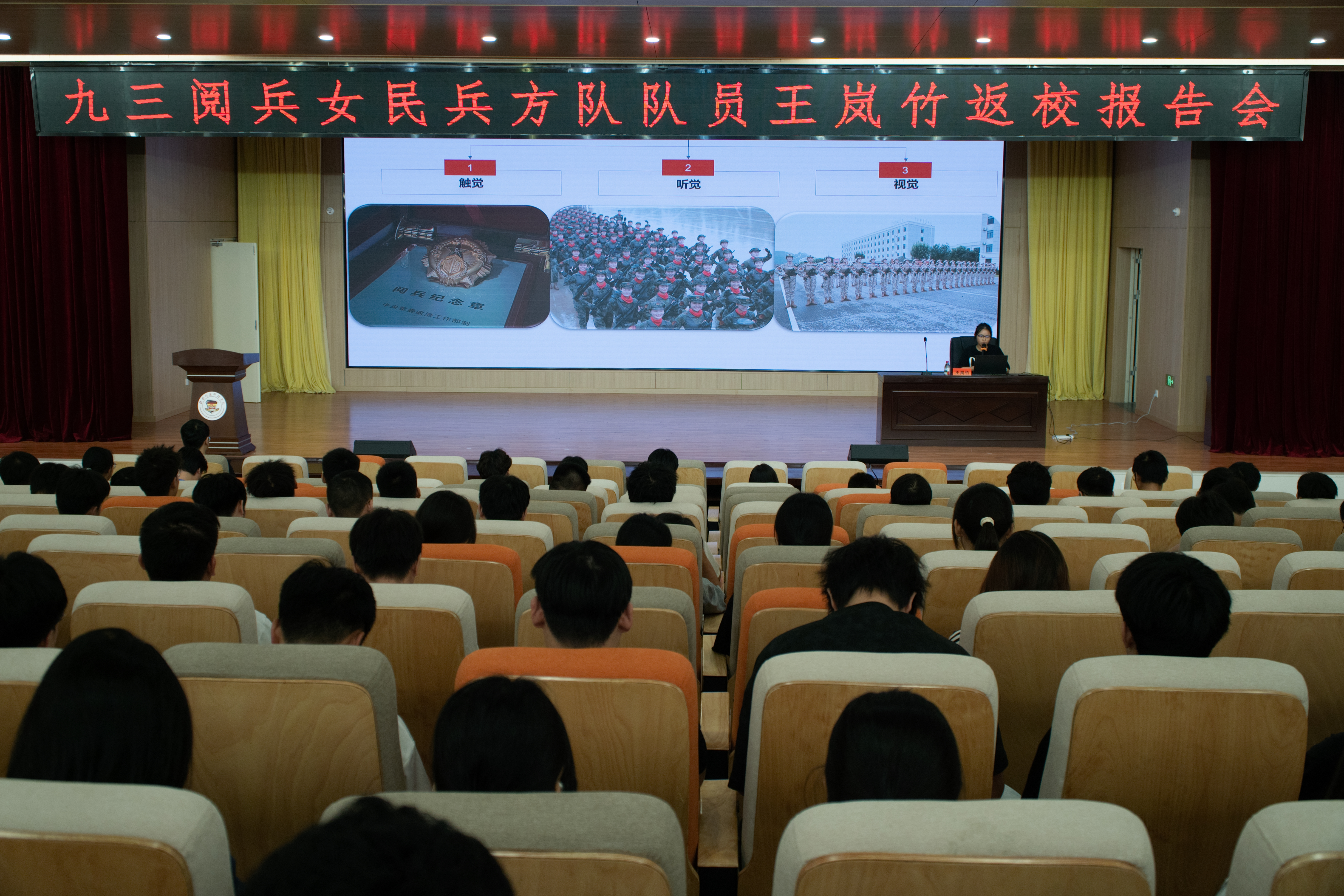 10月13日,太阳集团在博文楼F107报告厅隆重举办九三阅兵女民兵方队队员王岚竹返校报告会。本次报告会由参与阅兵的王岚竹担任主讲人,全校300余名师生现场聆听,共同感受中国女民兵的热血担当与精神力量,接受了一场深刻的爱国主义教育与理想信念洗礼。