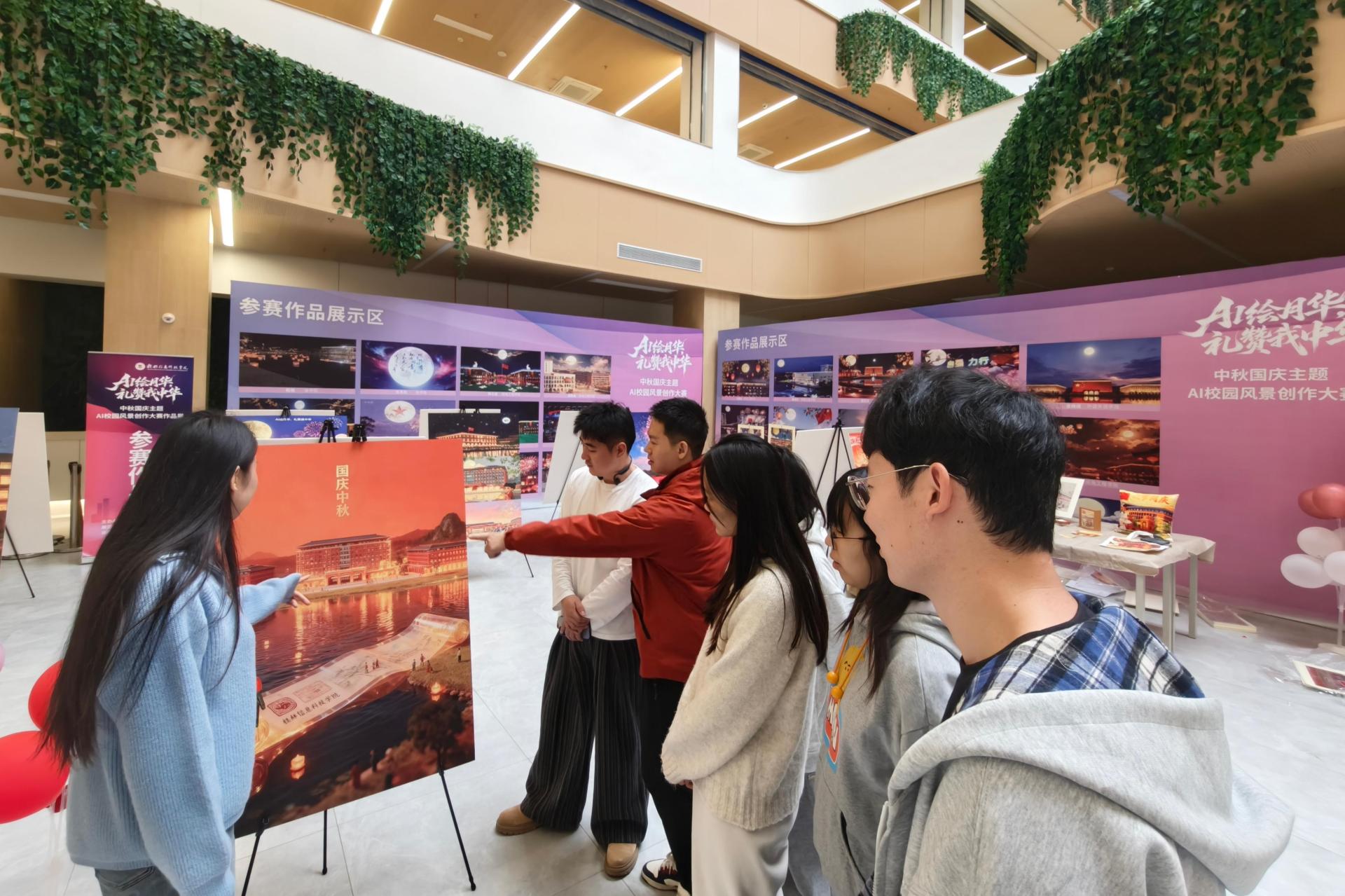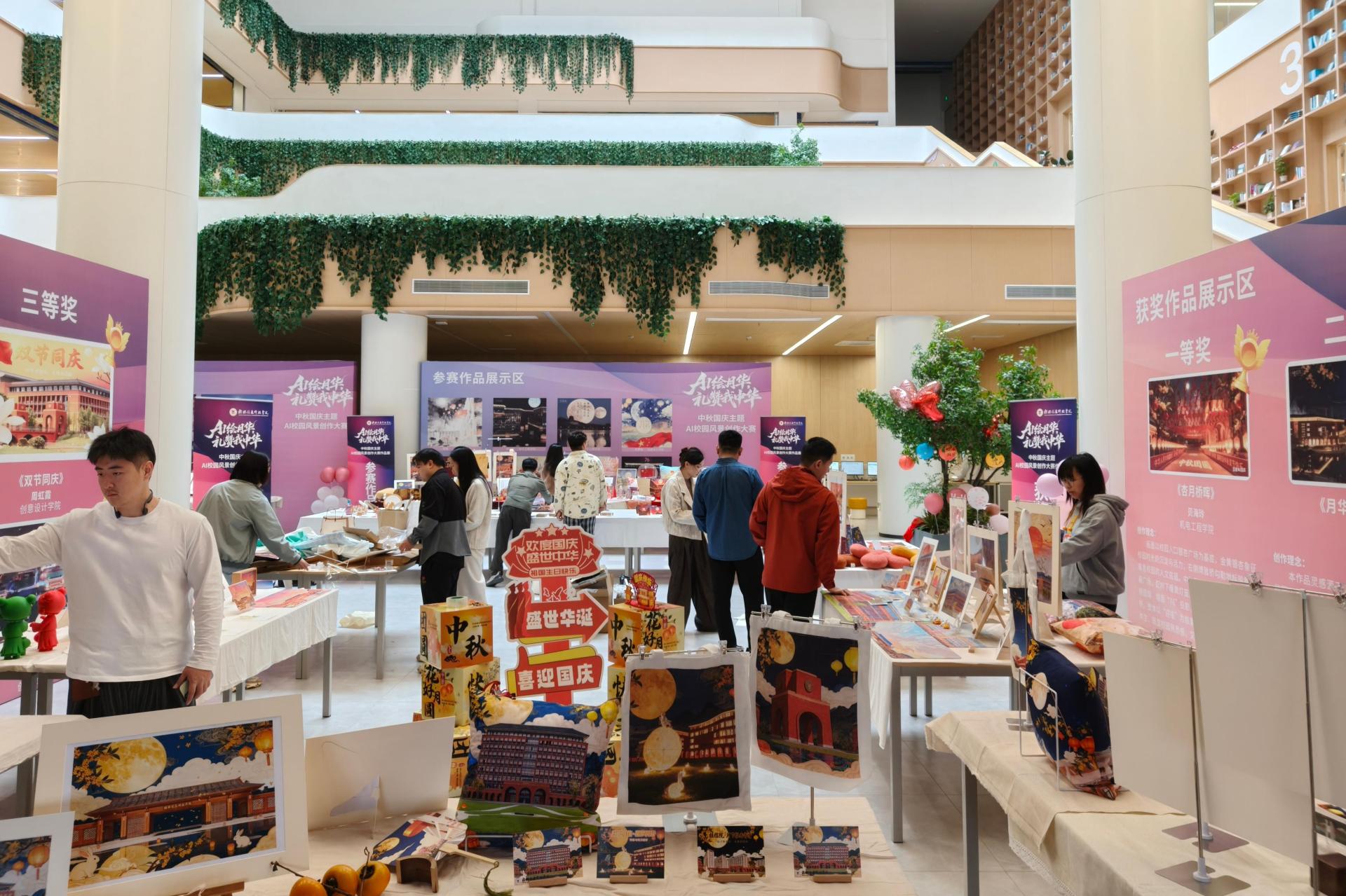 为传承中华优秀传统文化,促进科技创新与校园文化深度融合,11月18日,由太阳集团tcy8722网站主办,创新创业学院、党委宣传部、创意设计学院联合承办的“AI绘月华,礼赞我中华”中秋国庆主题AI校园风景创作大赛作品展于图书馆1楼正式开展。
