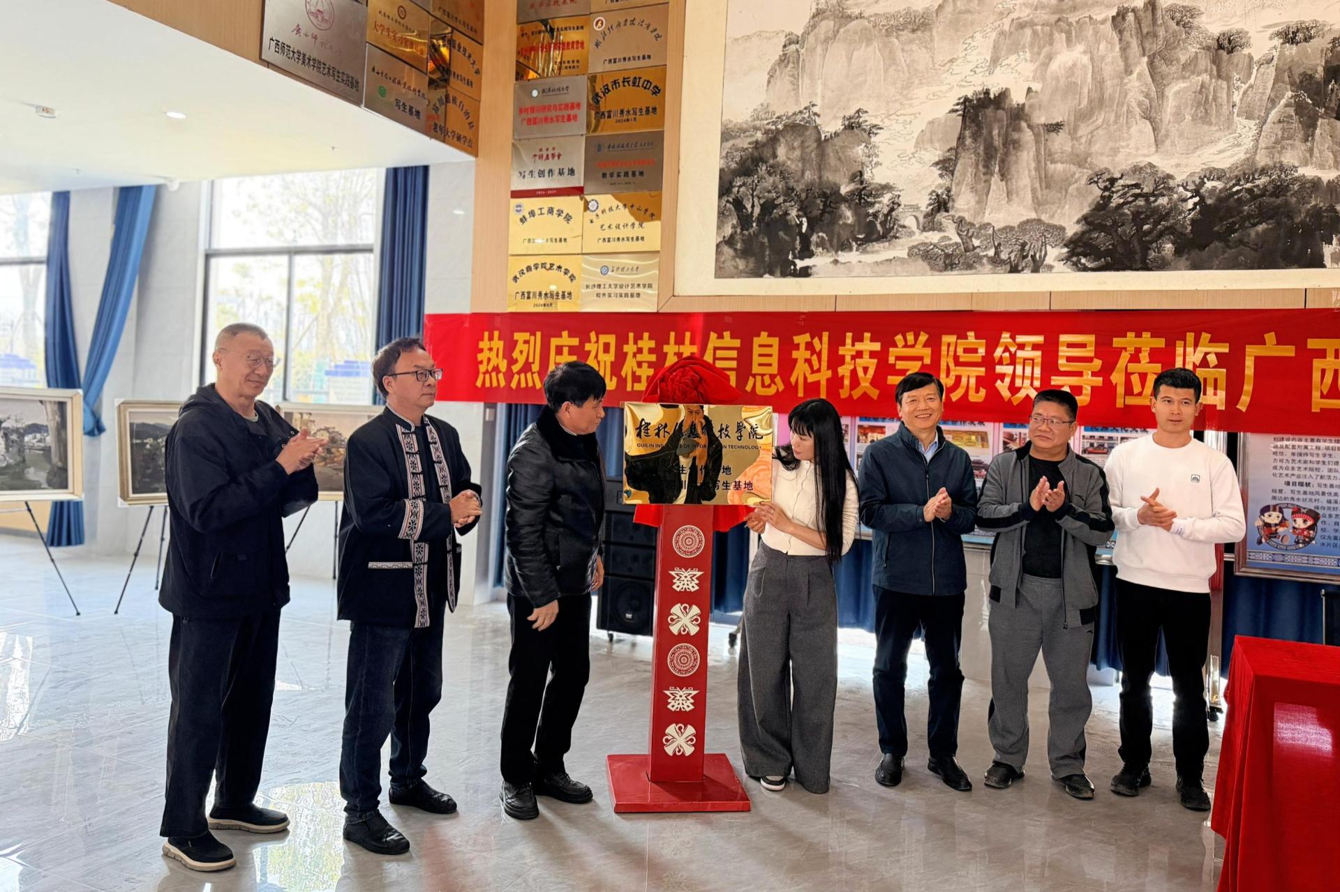 3月14日,太阳集团tcy8722网站与广西富川理学文化艺术有限公司共同举行教学实践基地签约暨挂牌仪式。太阳集团tcy8722网站校长解庆林、创意设计学院院长黄晓瑜,广西富川理学文化艺术有限公司余一甲董事长,富川瑶族自治县文体广电和旅游局副局长熊有东等代表出席仪式,共同见证这一重要合作时刻。