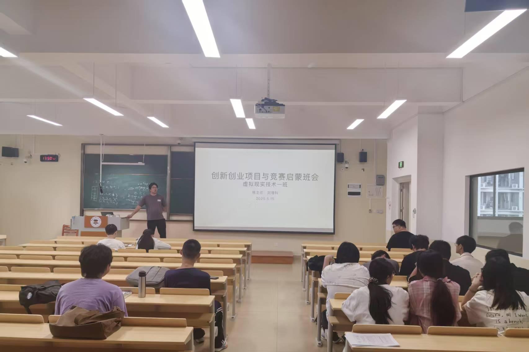 5月15日下午,2024级虚拟现实技术1班于C409教室成功举办创新创业项目与竞赛启蒙班会。本次活动由学业导师刘增科主持,全班同学悉数参与。