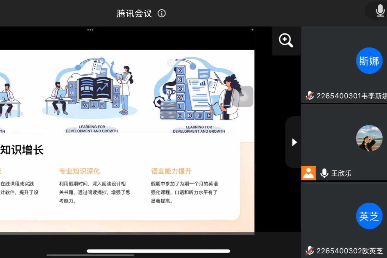 为了帮助同学们更好地丰富假期经历,明确未来发展方向,2022级环境设计专升本3班于1月15日召开了线上“假期实践:提升自我,规划未来”主题班会。本次班会由学业导师王欣乐老师主持,全体同学参与。