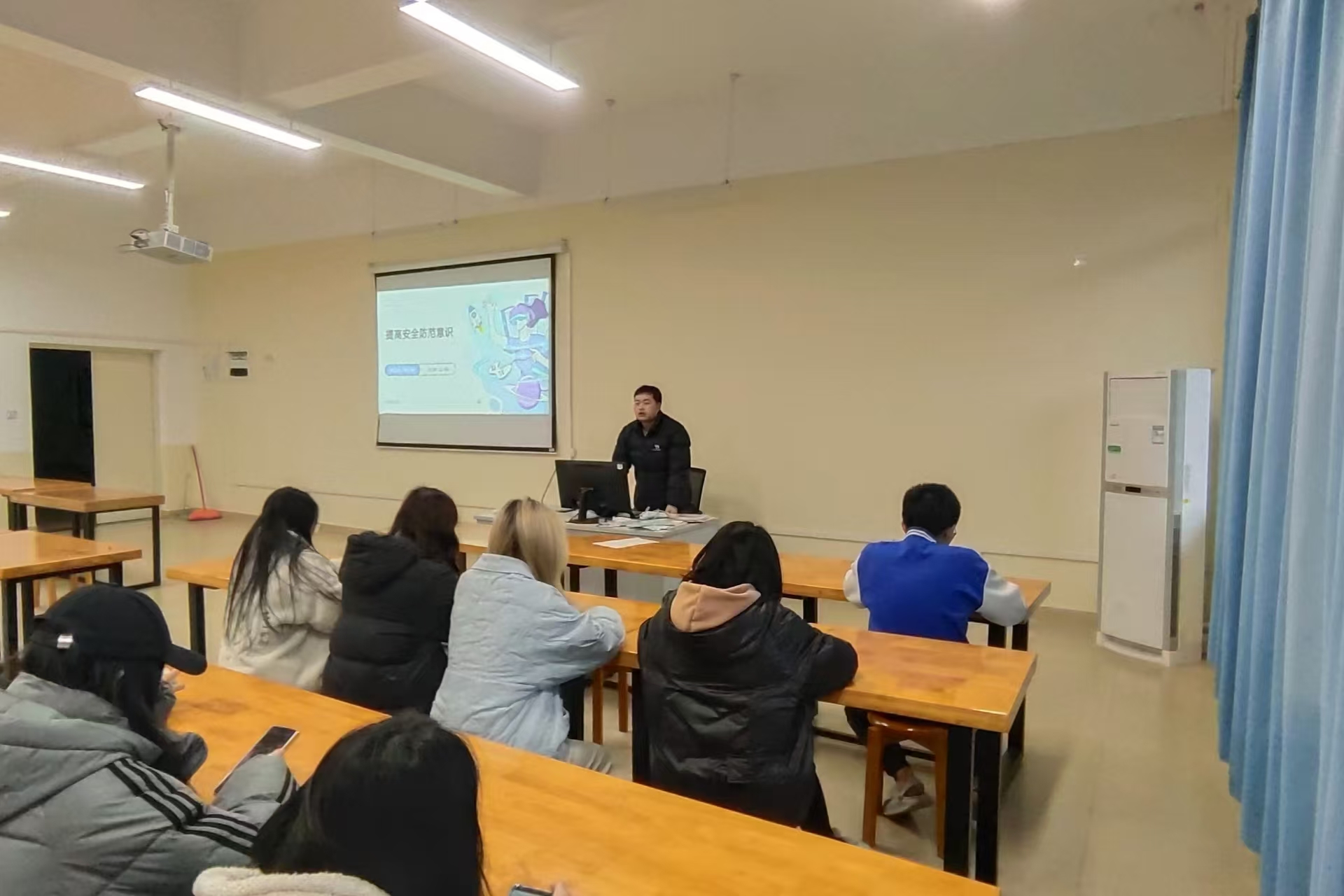 一系列触目惊心的校园安全事故案例视频拉开班会序幕,杨文斌老师通过展示火灾隐患、网络诈骗、校园暴力等视频,让同学们深刻认识到校园安全问题离他们并不遥远。在知识讲解环节,杨文斌老师详细阐述了安全领域的防范要点,提醒同学们时刻保持警惕,规范自身行为。互动交流阶段,同学们热情高涨,纷纷分享自己身边的安全小故事,一个个鲜活的案例引发了大家的热烈讨论。同学们在轻松氛围中将安全知识牢记于心。