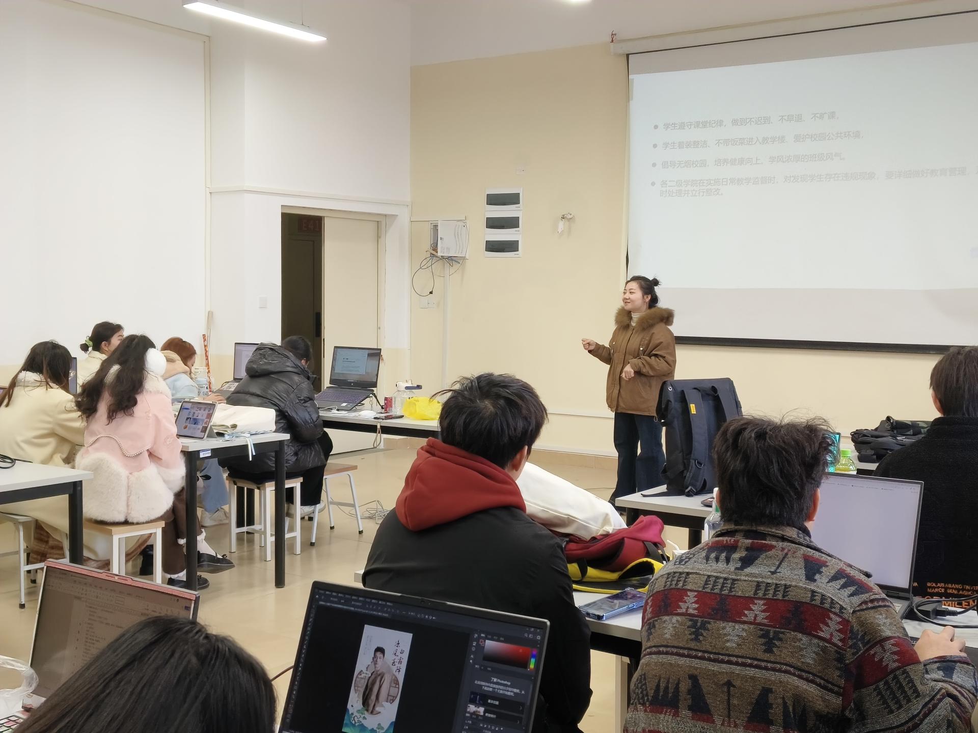 为了进一步引导学生树立正确的学习态度和考试观念,加强考风考纪教育,促进学风建设,创意设计学院2022级视觉传达设计专升本1班于12月19日在德远楼E414教室开展了“学风筑基,考纪护航”主题班会。本次班会由学业导师王玉莲主持,全班同学参加。