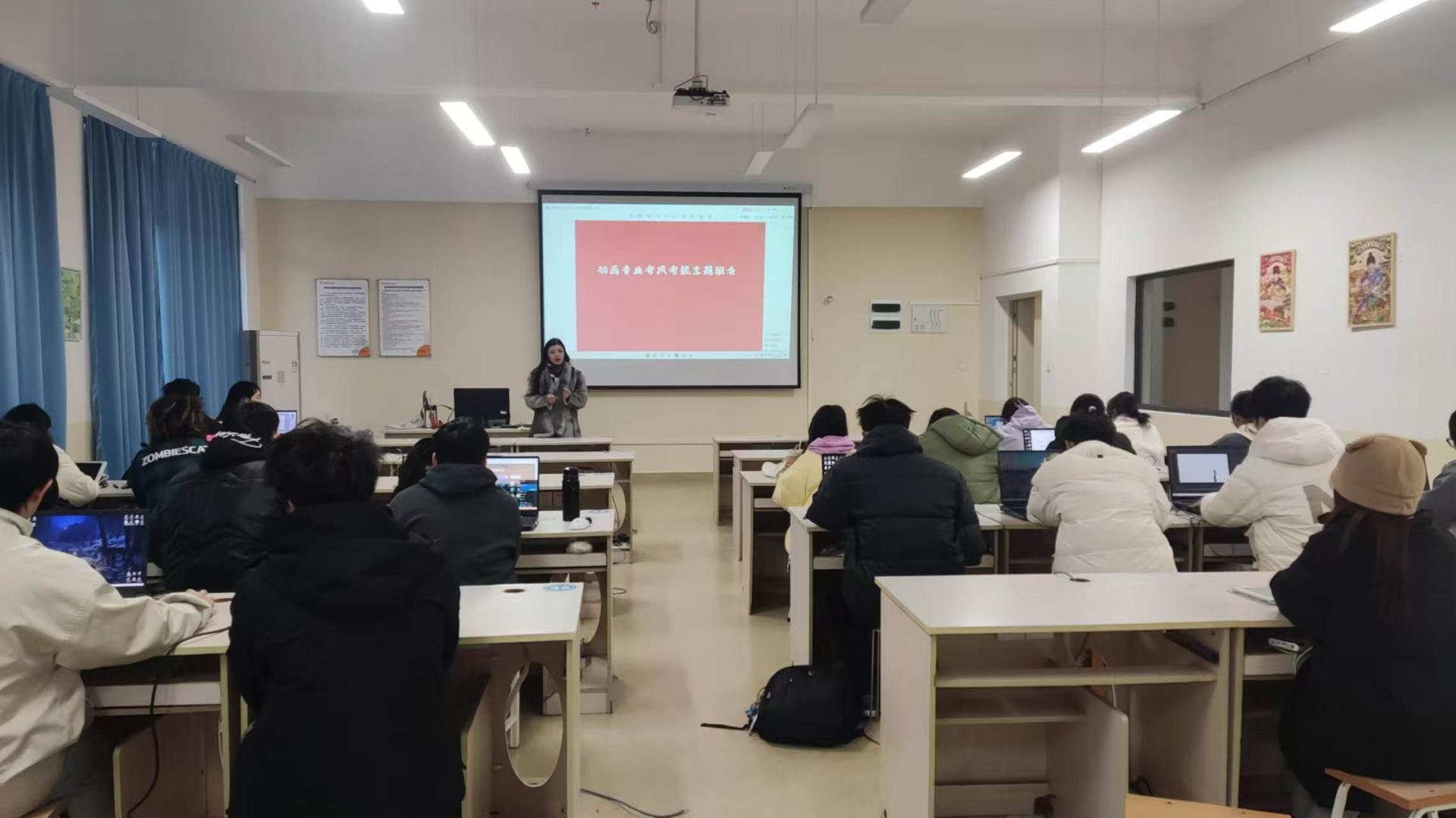 在四六级考试来临之际,为增强学生诚实守信意识,严肃考风考纪,12月9日,21553001班、21553002班 以及21653001班在德远楼E409举办考风考纪主题班会。班主任伍菲主持此次班会。