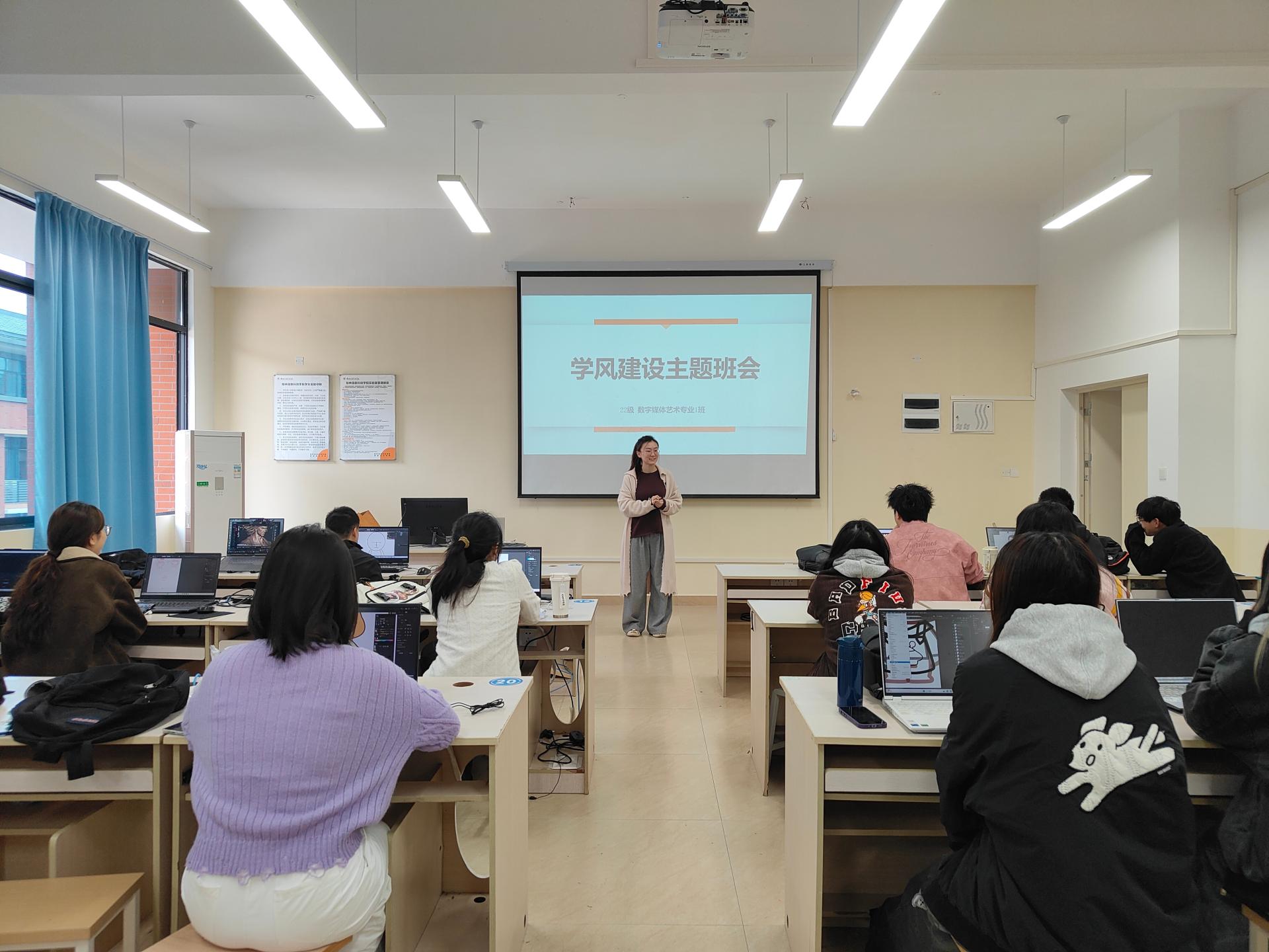班会伊始,刘昊老师首先强调了学风建设的重要性和紧迫性。她指出,良好的学风是学院发展的基石,也是学生成长成才的重要保障。然而,近期他注意到部分大三学生在学习习惯上出现了松懈现象,如课堂参与度下降、作业提交不及时、自主学习动力不足等,这些问题不仅影响了学生的学业成绩,也对其未来的职业发展产生了不利影响。同学们也积极发言,分享了自己的学习经验和困惑。针对问题,老师逐一进行了分析,并提出了具体的解决方案并建议同学们要树立正确的学习态度,明确学习目标,合理规划学习时间,提高学习效率。同时,鼓励同学们积极参加课堂讨论和课外活动,拓宽视野,增长见识,培养自己的创新能力和团队协作精神。