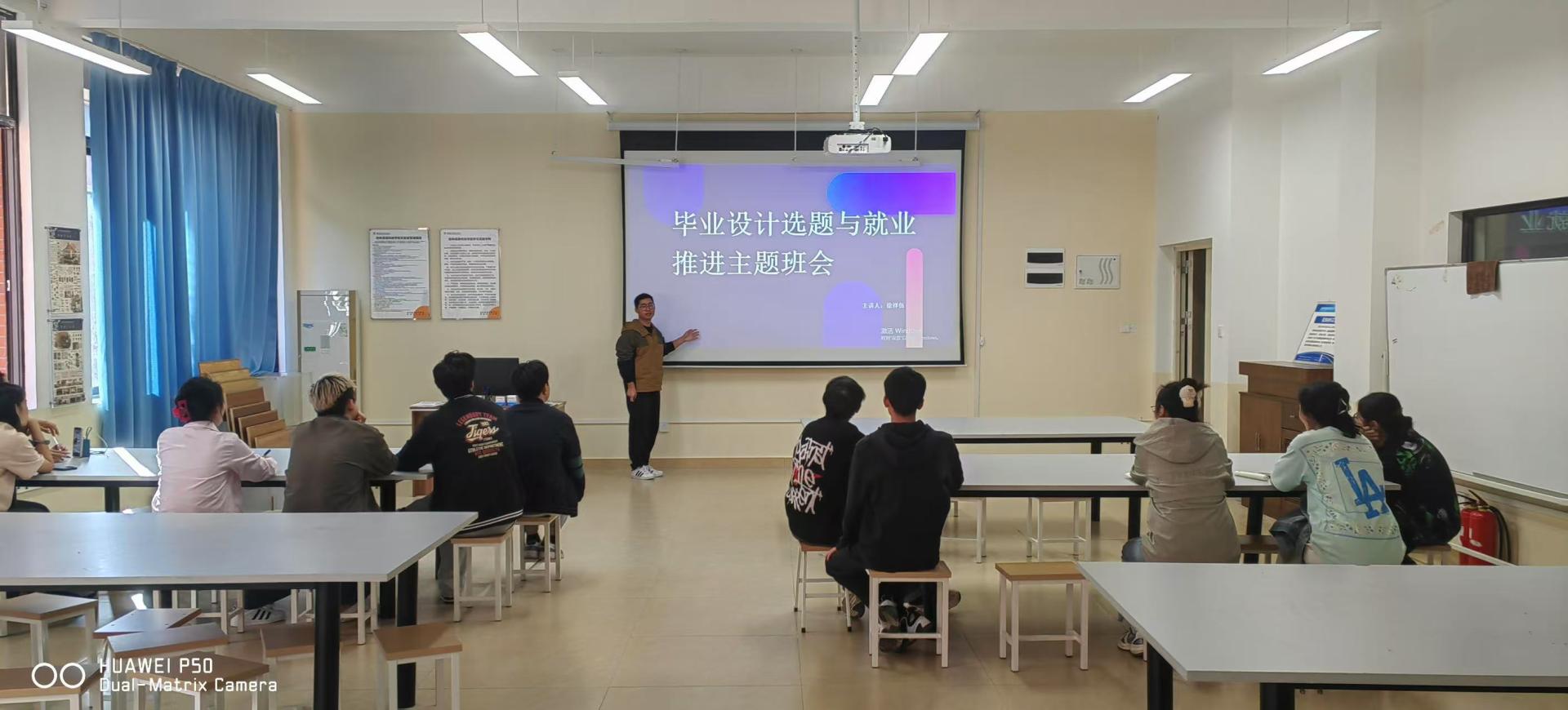 近日,创意设计学院环境设计专业已经进行了毕设导师遴选工作,徐祥伍老师结合21554002班实际情况与当前就业形势为学生带来前沿的设计趋势和就业市场分析。并分享如何在设计中融入创新元素,同时满足客户需求,为班级的毕业设计提供指导。