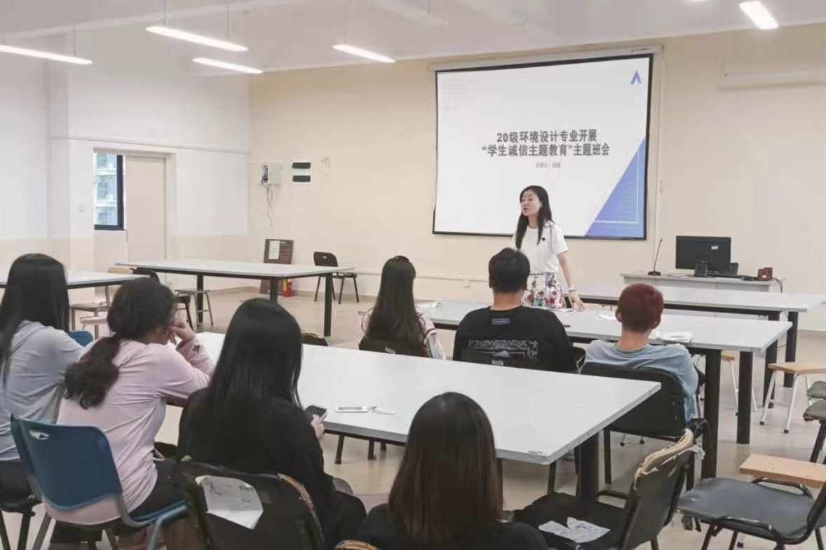 9月20日下午,20级环境设计专业在E314教室开展“学生诚信主题教育”主题班会,会议由班主任田婧老师主讲。