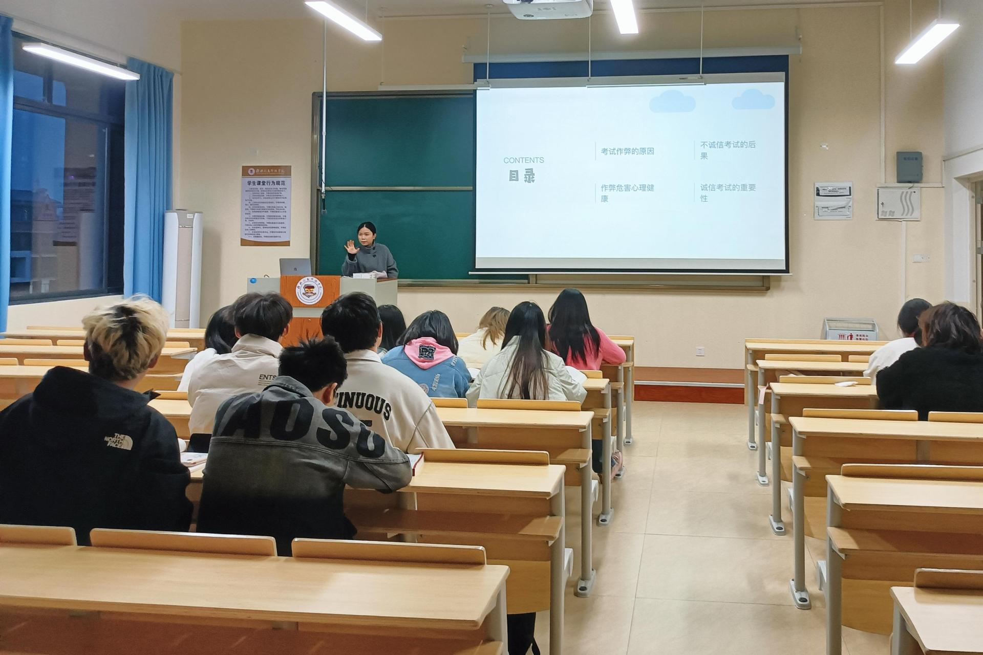 班会伊始,谢金桃老师点明诚信是学生的基本素养,考试诚信更是学风建设的核心环节。班会中,同学们结合自身经历交流了对“诚信考试”的看法,不少同学表示会主动拒绝作弊行为,以真实成绩展现学习效果。