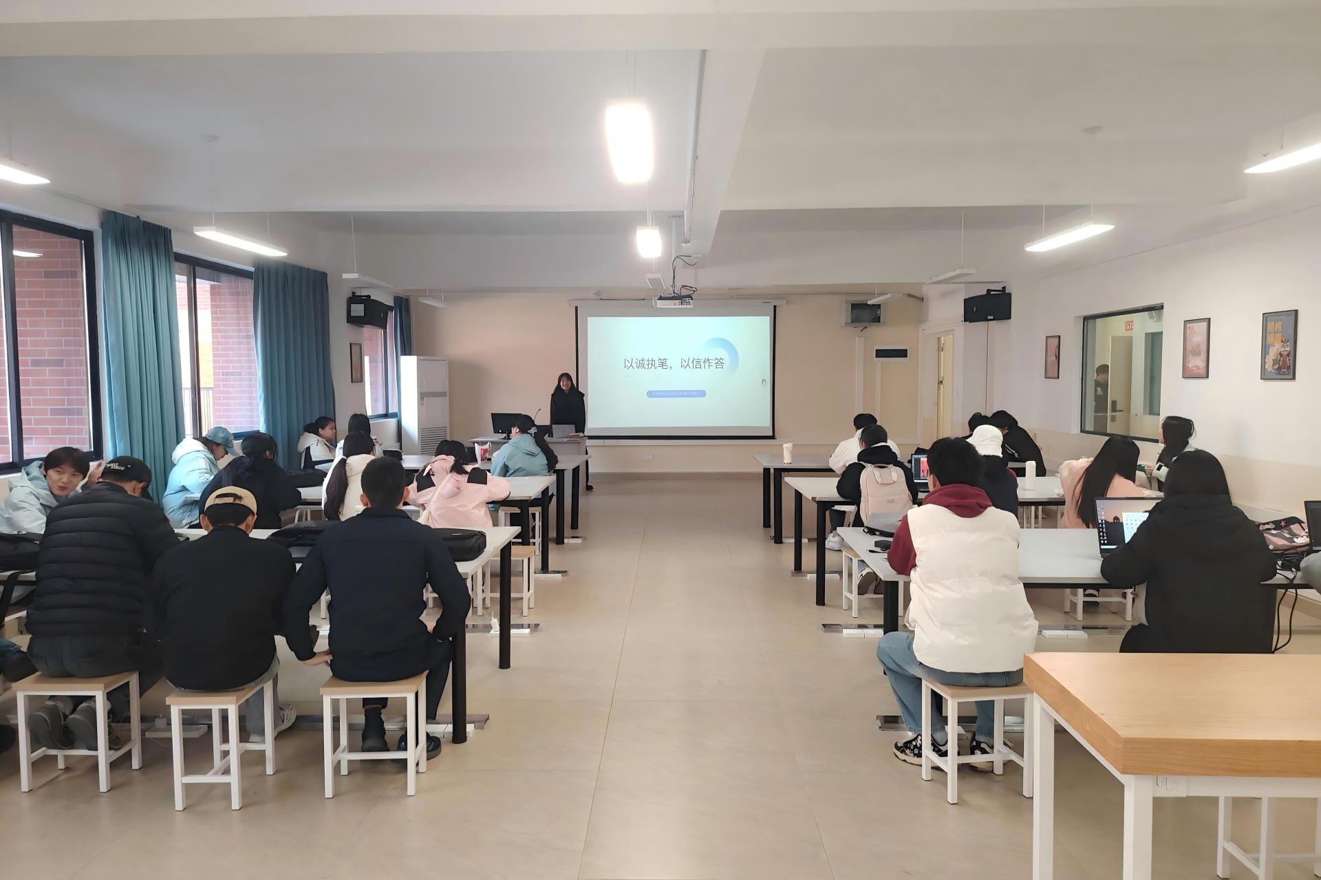 为引导学生树立诚信应考理念,强化考试纪律意识,帮助同学们以良好状态迎接考试,2023级视觉传达设计专升本1班于12月9日在守正楼G302教室组织召开“诚信应考,不负韶华”诚信考试主题班会。学业导师官晴宇主持会议,全班同学共同参与。