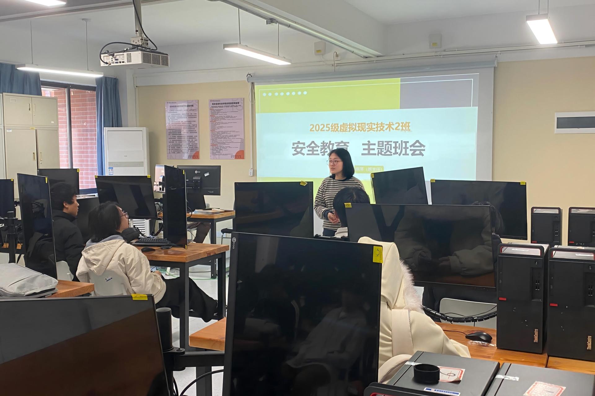 为进一步强化大一新生的安全防范意识,提升自我保护能力,营造安全、和谐的校园氛围,12月10日,2025级虚拟现实技术专业2班召开“安全教育”主题班会。班会由班主任陈燕萍老师主持,全体同学积极参与,围绕宿舍安全、网络安全、假期安全及消防安全四大核心板块展开深入学习与交流。