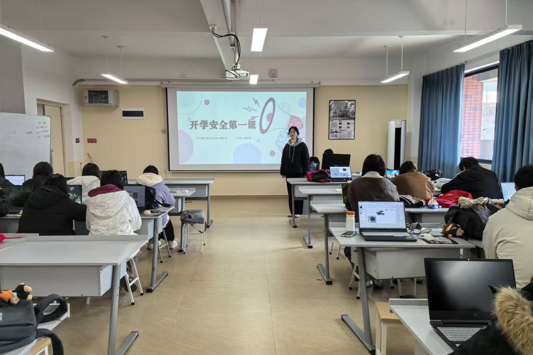 为了帮助同学们迅速调整状态,迎接春季学期的学习生活,3月3日,创意设计学院2023级产品设计3班于守正楼G206教室召开了“开学第一课”主题班会。本次班会由班主任吴辰怡老师主持,全体同学共同参与。