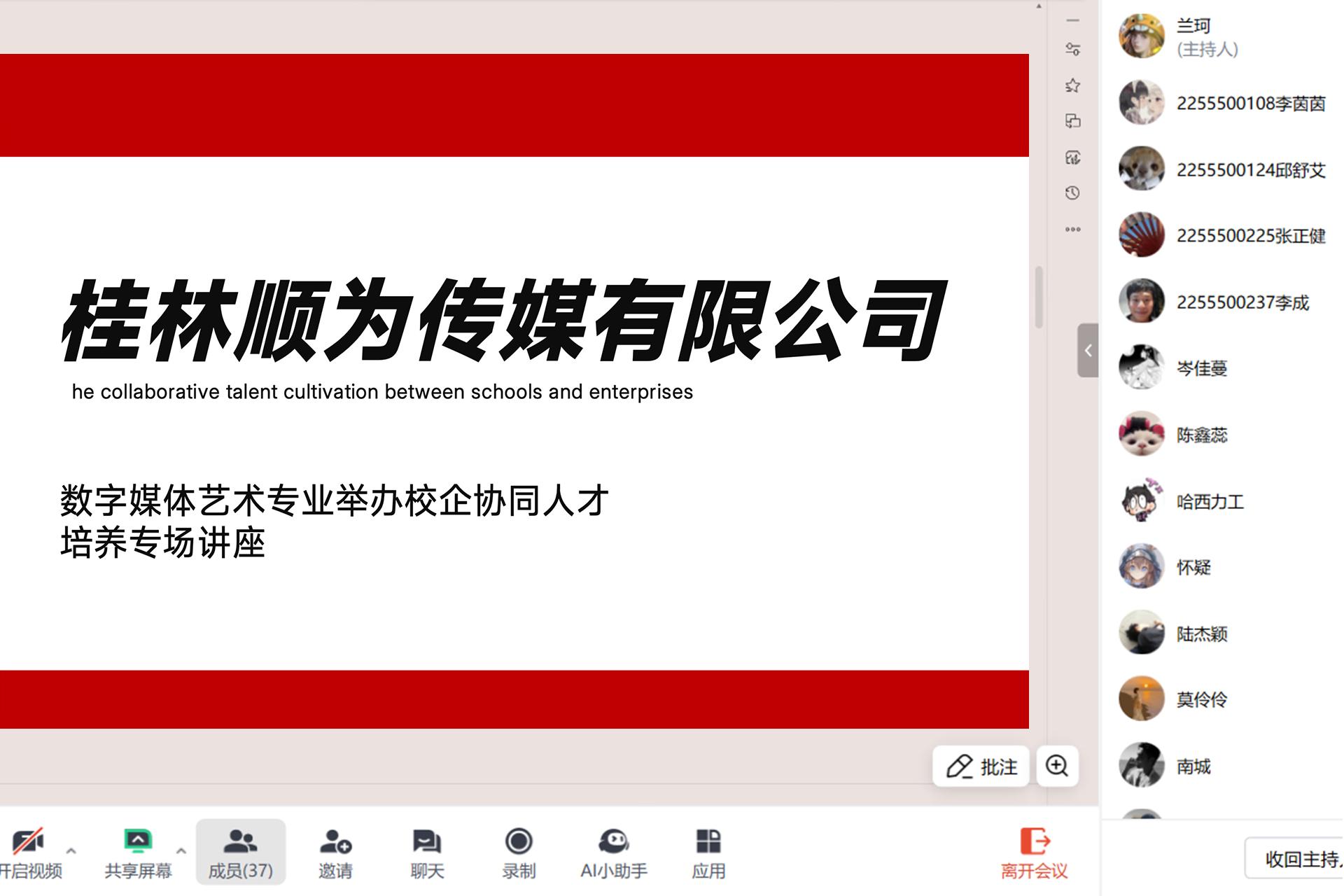 5月26日,数字媒体艺术专业邀请桂林市顺为文化传媒有限公司走进学校,成功举办了一场干货满满的宣讲会,吸引了众多专业学生参与。
