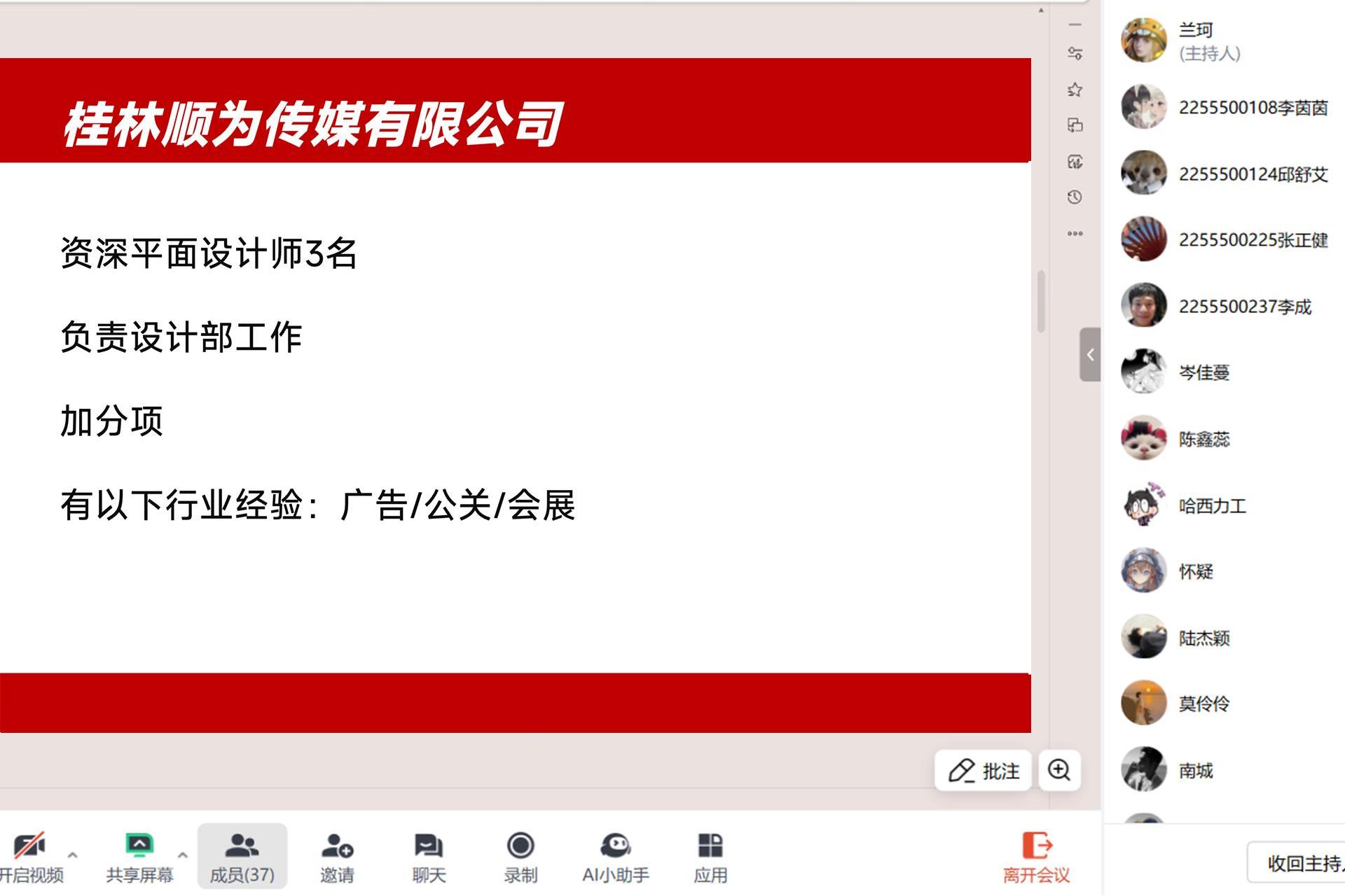 本次5月专场招聘汇聚了广州名匠装饰有限公司桂林分公司(环境设计、室内设计方向)、广西创想传媒有限公司(数字媒体、品牌营销方向)等优质企业。企业涉及装饰工程、文化传媒、互联网营销等领域,提供的岗位包括室内设计主管、品牌策划师、短视频设计师等,岗位层次丰富,从基层设计岗到管理岗均有涵盖,为学生提供了多元化的职业发展选择。