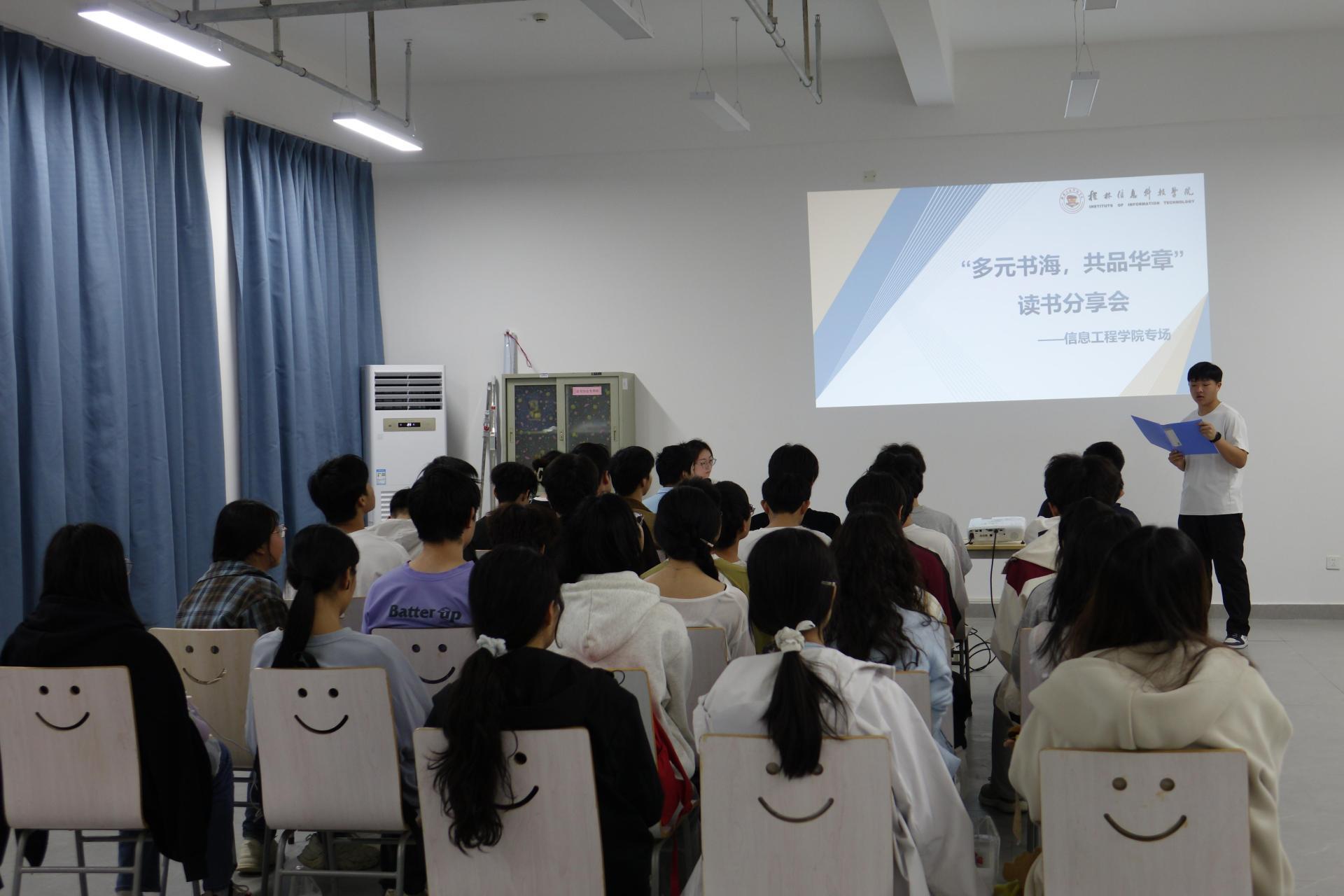 为营造浓厚的校园阅读氛围,搭建学生思想交流与知识共享平台,4月14日,创意设计学院在知行楼621教室承办“多元书海,共品华章”读书分享会。本期读书分享会由信息工程学院的学生担任分享嘉宾。