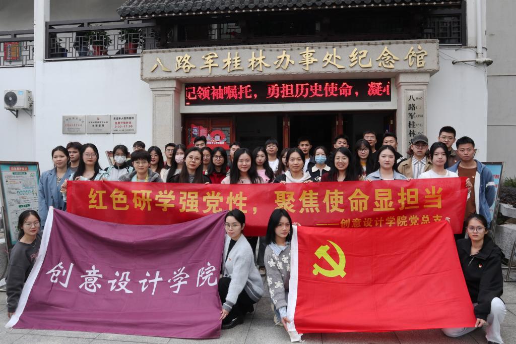 为深入学习贯彻落实习近平新时代中国特色社会主义思想,切实推动主题教育深入人心,用红色资源和红色文化充实主题教育。11月24日,创意设计学院党总支组织师生党员前往八路军桂林办事处纪念馆开展“红色研学”主题活动,学院院长助理、“双带头人”教工党支部党员田婧带队,各支部师生党员共50人参加本次活动。