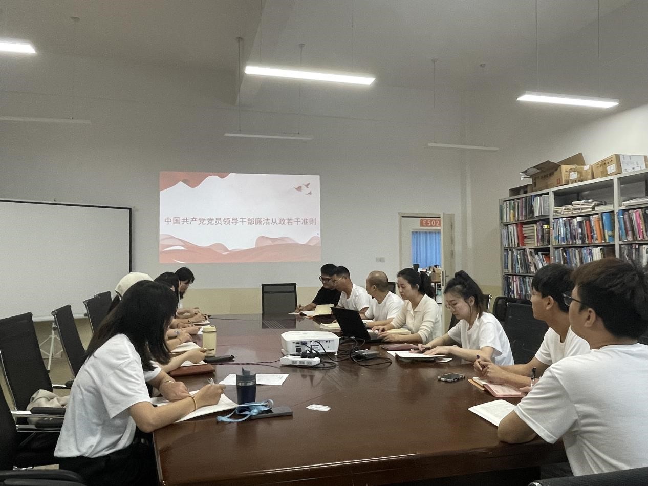 教工党支部梁瑛书记带领教师党员们学习了《中国共产党党员领导干部廉洁从政若干准则》,希望各位党员同志能严格遵守准则要求和组织纪律。梁书记以案为鉴,结合教师工作日常和工作经验,分享了近年来教师队伍中出现的反面案例,强调了廉洁从政的必要性。宣读《中国共产党纪律处分条例》,说明了违纪违法行为的严重后果,为支部党员上了一堂现实、有效的廉政教育课。