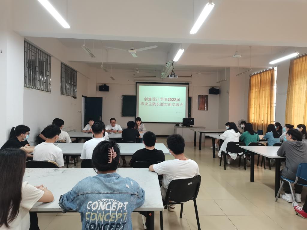 为充分了解广大毕业生的心声,进一步推动我院“我为师生办实事”实践活动走深走实,4月28日,创意设计学院于42203教室召开2022届毕业生“院长面对面”座谈会。创意设计学院院长黄晓瑜、党总支书记黄云鹏、毕业班辅导员刘思及40余名毕业班学生参加此次座谈会。