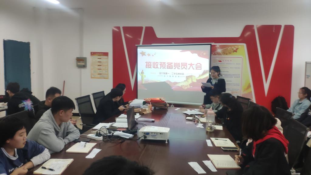 11月15日下午,设计系第一、第二学生党支部在42406党员活动室召开预备党员接收大会,讨论是否吸收张梦瑶等29名发展对象为预备党员的议题。会议由组织员陈韵姿主持,第一、第二学生党支部全体党员参会。