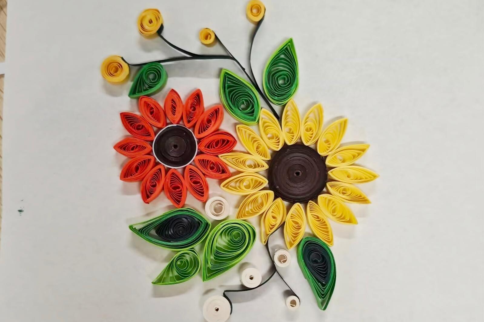 活动伊始,织围巾体验率先拉开序幕。对于起针、收针等基础操作,同学们围坐交流、互相指导,手把手纠正手法。从生疏摸索到逐渐熟练,指尖在毛线与织针间慢慢穿梭,各色围巾雏形渐显。在衍纸创作环节,同学们将彩色衍纸条卷曲、折叠、粘贴,大胆尝试各类造型,把日常风景、个性图案等灵感融入作品,陆续完成装饰画、书签等精致成果。创作过程中,大家不时交流操作小窍门,互相借鉴创意,在轻松互动中碰撞出灵感火花。