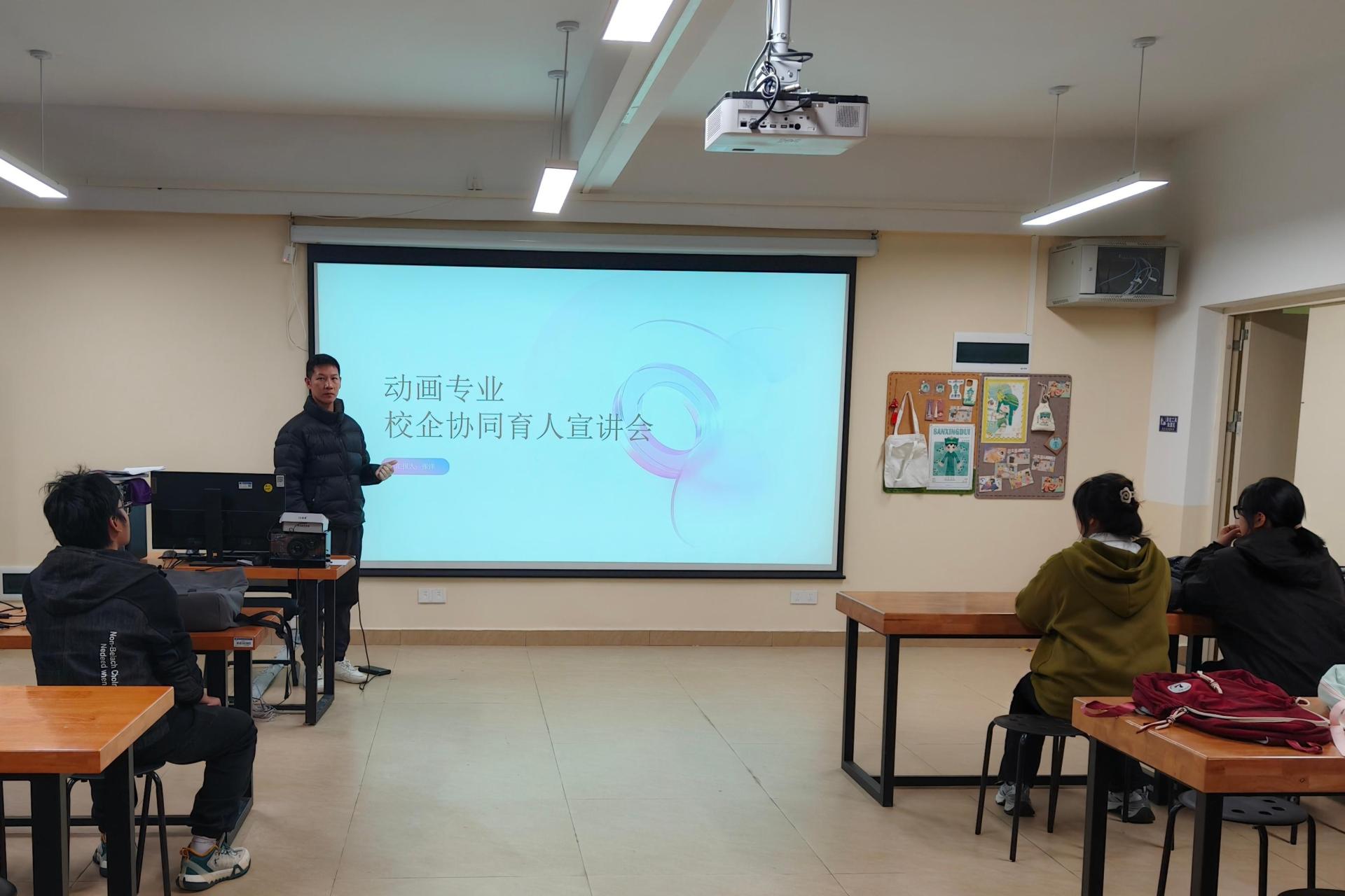 为进一步完善就业文化建设,搭建校企合作桥梁,助力动画专业学生明确职业发展方向,11月27日,动画专业校企协同育人宣讲会在守正楼G409教室成功举办。本次宣讲会由动画专业张洋老师主持,大四动画专业学生到场参与,共同探寻校企协同育人的实践路径与就业新机遇。宣讲会上,张洋老师围绕校企协同育人的核心内涵、合作模式及实践价值展开详细讲解。他结合当前动画行业发展趋势与企业人才需求标准,系统介绍了与优质企业在联合培...