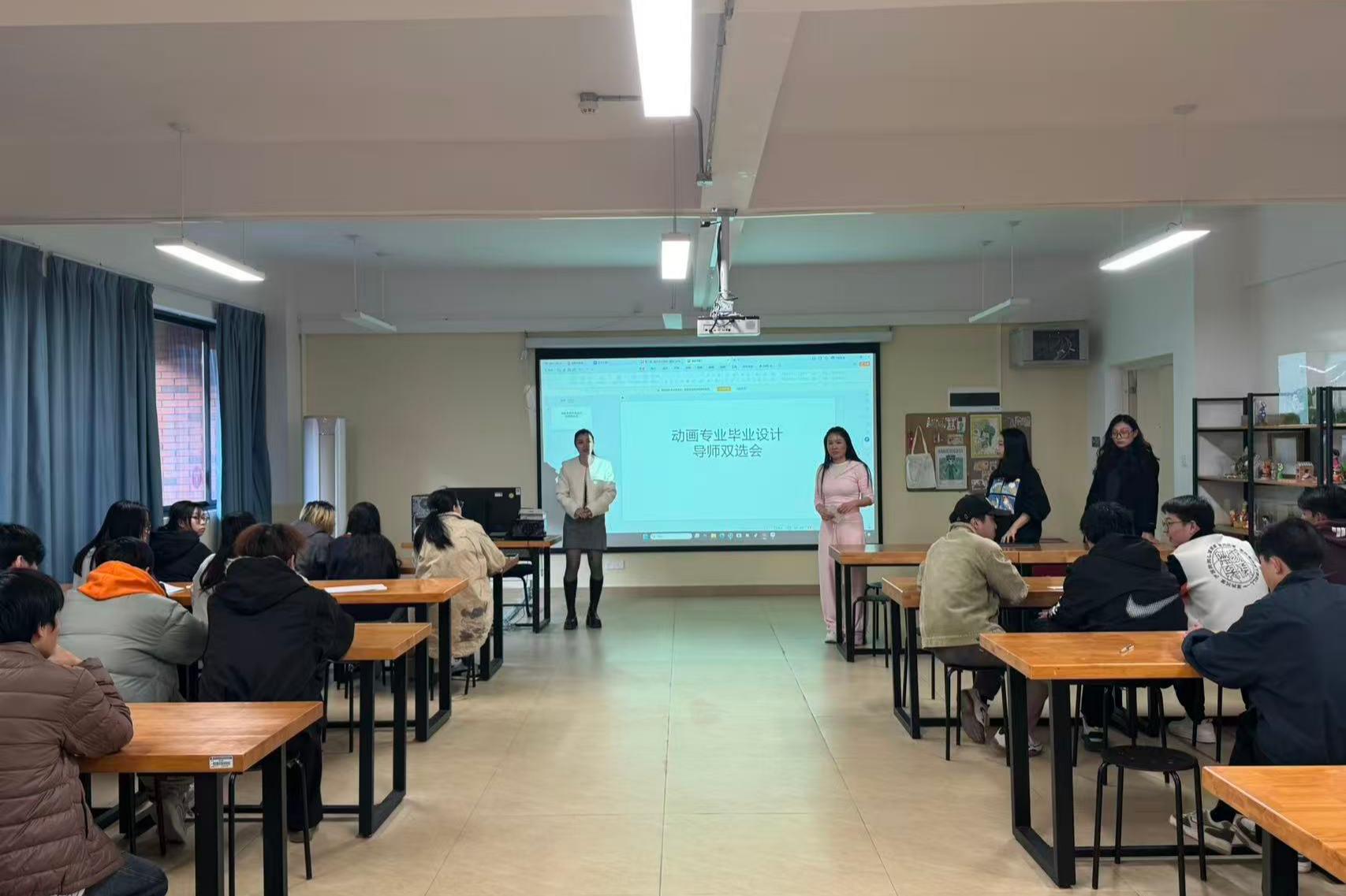 为进一步落实学校立德树人根本任务,加强动画专业毕业设计指导工作,动画专业于11月27日在德远楼E205教室顺利举行2026届毕业设计导师双选会。会议由院长助理、动画教研室主任伍菲老师主持,创意设计学院院长黄晓瑜老师、数字媒体艺术教研室兰珂老师、虚拟现实技术教研室主任韩笑老师均出席会议。会上,伍菲老师详细介绍了本届毕设导师选择的具体安排,强调毕业设计是检验学生专业综合能力与实践创新水平的重要环节。围绕“选题...