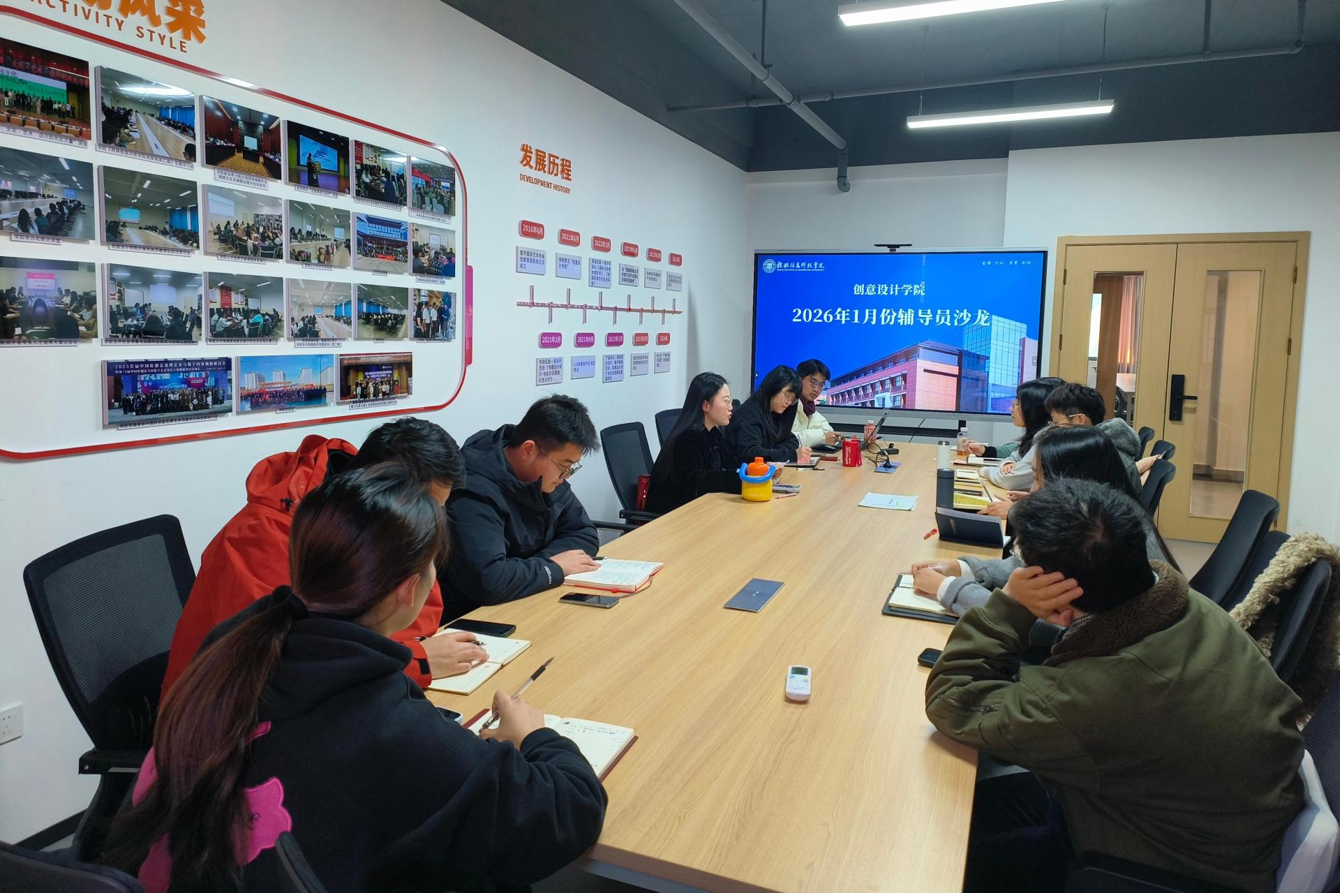 为进一步巩固教师队伍建设成果,提升辅导员工作能力与参赛竞争力,1月9日,创意设计学院在知行楼教师工作坊716顺利举办1月份辅导员沙龙活动。本次活动由学院党总支副书记刘珊珊主持,全体辅导员参加。活动现场,周金悦老师结合自身参与职业生涯规划大赛(教师赛道)的培训经历,向与会人员分享参赛经验。她以赛事核心要求为切入点,从精准定位顶层设计、深化产业融合对接、探索学生生涯教育路径三个维度展开详细讲解,系统剖析...