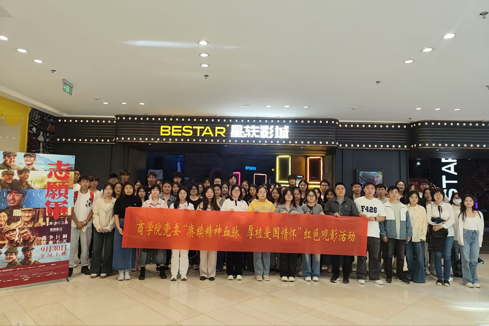 为庆祝中华人民共和国成立75周年,弘扬爱国主义精神,涵养家国情怀,增强师生的民族自豪感和国家荣誉感,11月1日,商学院党委组织师生党员开展“赓续精神血脉 厚植爱国情怀”红色观影活动,集体观看爱国主义影片《志愿军:存亡之战》。