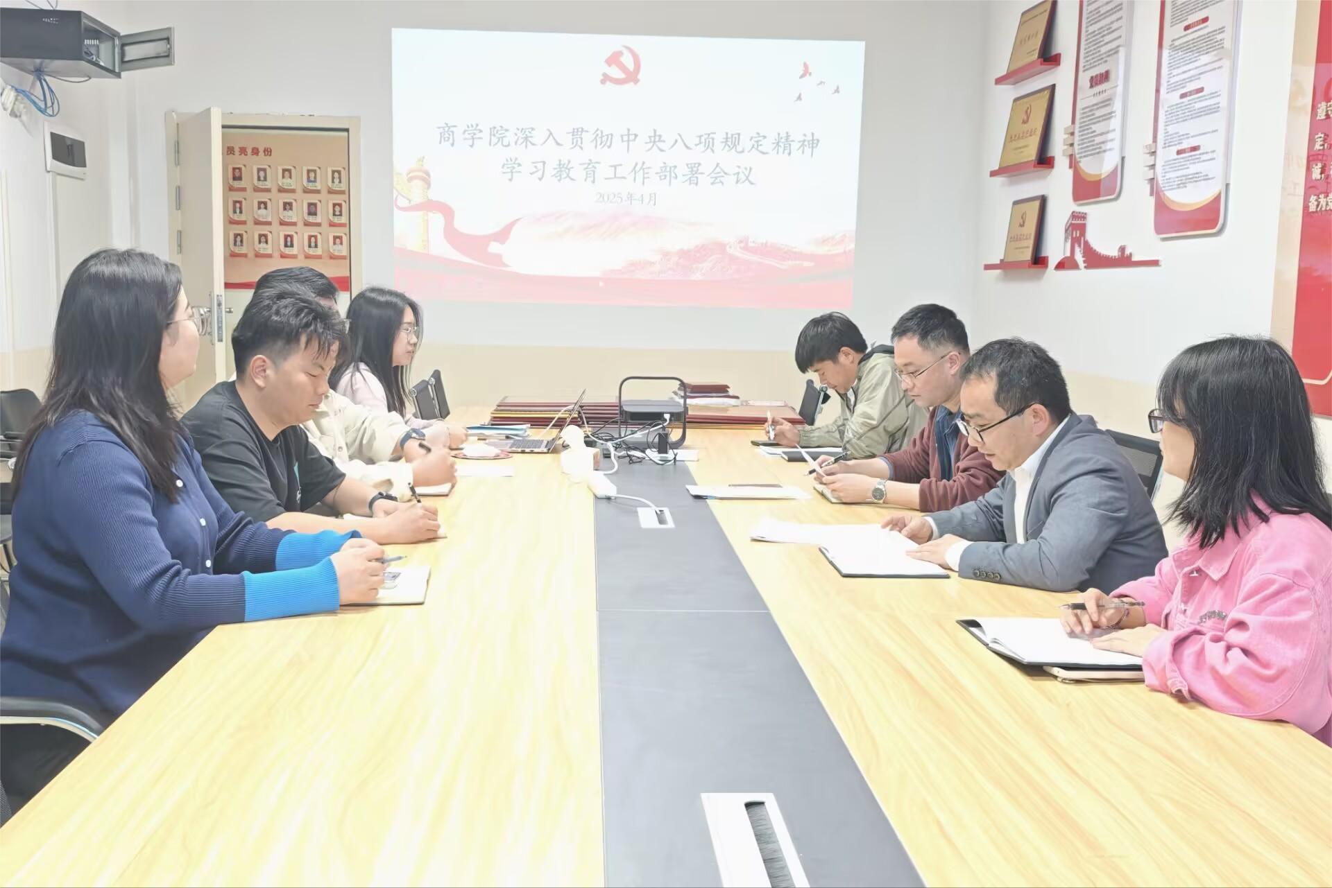 为深入贯彻中央八项规定精神学习教育,推进作风建设常态化长效化,4月11日,商学院在F504会议室召开深入贯彻中央八项规定精神学习教育工作部署会议。此次会议由学院党委书记许奇主持,学院党委委员、各党支部书记、组织员等参加会议。