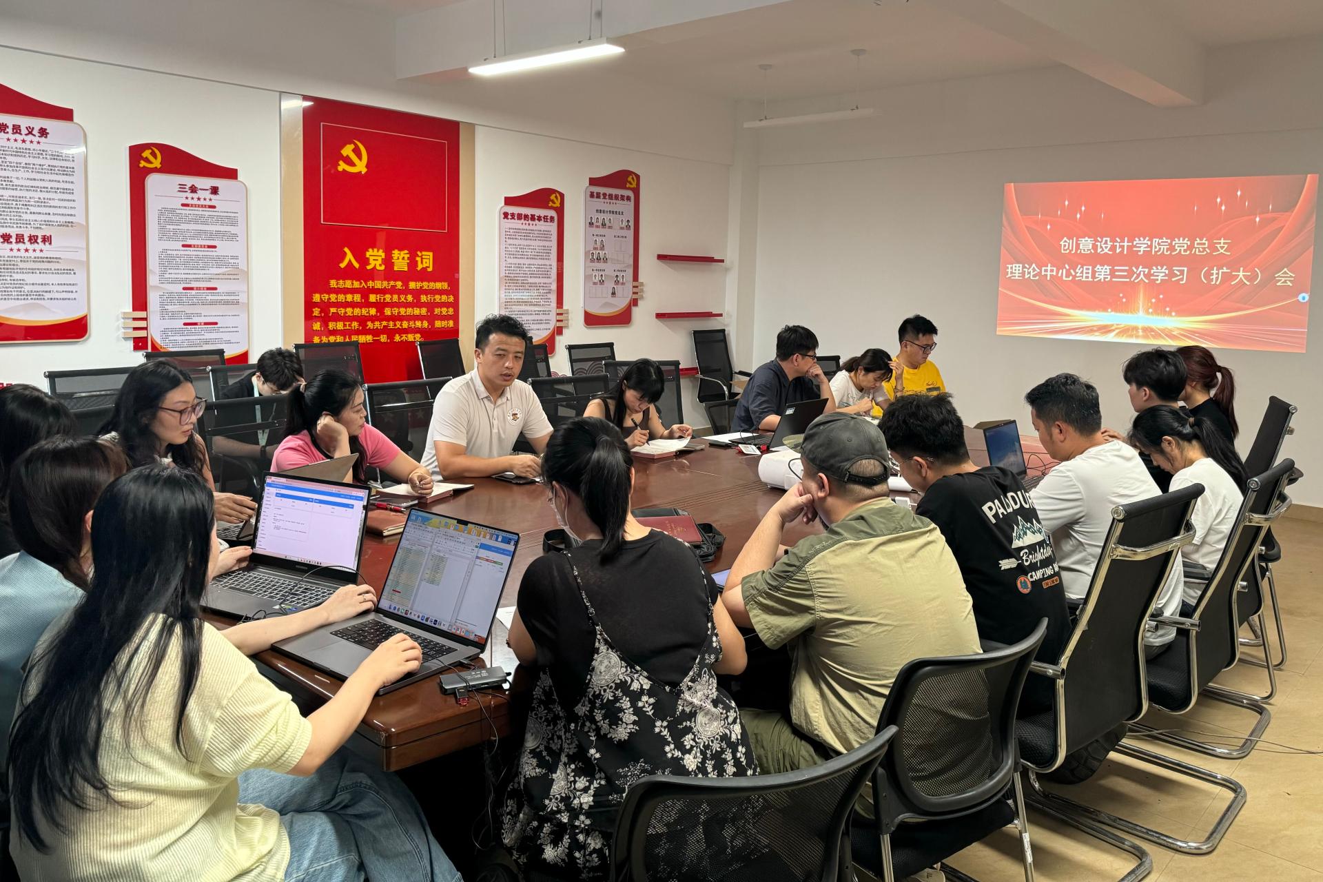 为强化党员干部政治担当与纪律意识,6月27日,创意设计学院党总支召开第三次理论学习中心组学习(扩大)会,专题学习《习近平关于加强党的作风建设论述摘编》第七、八、九章,并结合“四个一”典型案例开展警示教育。学院党总支书记范恒祯主持会议。学院领导班子、党总支委员、组织员、全体教研室主任参加会议。