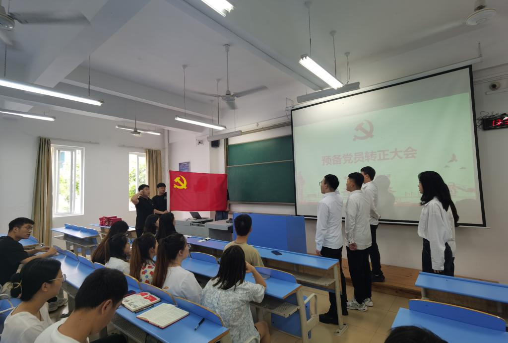会议讨论了王宁等16名同志是否接收为预备党员和王艺霏等23名预备党员能否按期转为正式党员的事宜。大会通过了王宁等16名同志的接收和王艺霏等23名预备党员的转正,并报上级党委审批。投票结束后,在支部书记的领誓下,党员同志们向党旗庄严宣誓,声音洪亮,整齐划一,表达了全心全意为人民服务的决心。