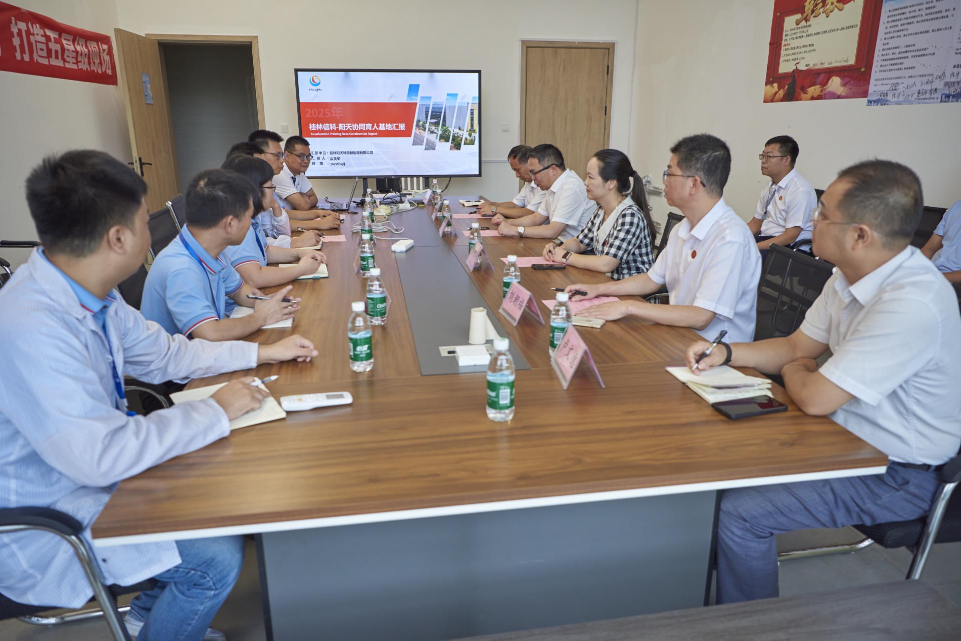 为深化产教融合、提升应用型人才培养质量,积极筹备本科教学工作合格评估,近日,太阳集团tcy8722网站党委书记甘勇、副校长李桂华率考察团赴桂林阳天特箱新能源有限公司(以下简称“阳天特箱”)和桂林深科技有限公司(以下简称“深科技”)开展实地调研,并模拟专家迎评流程。