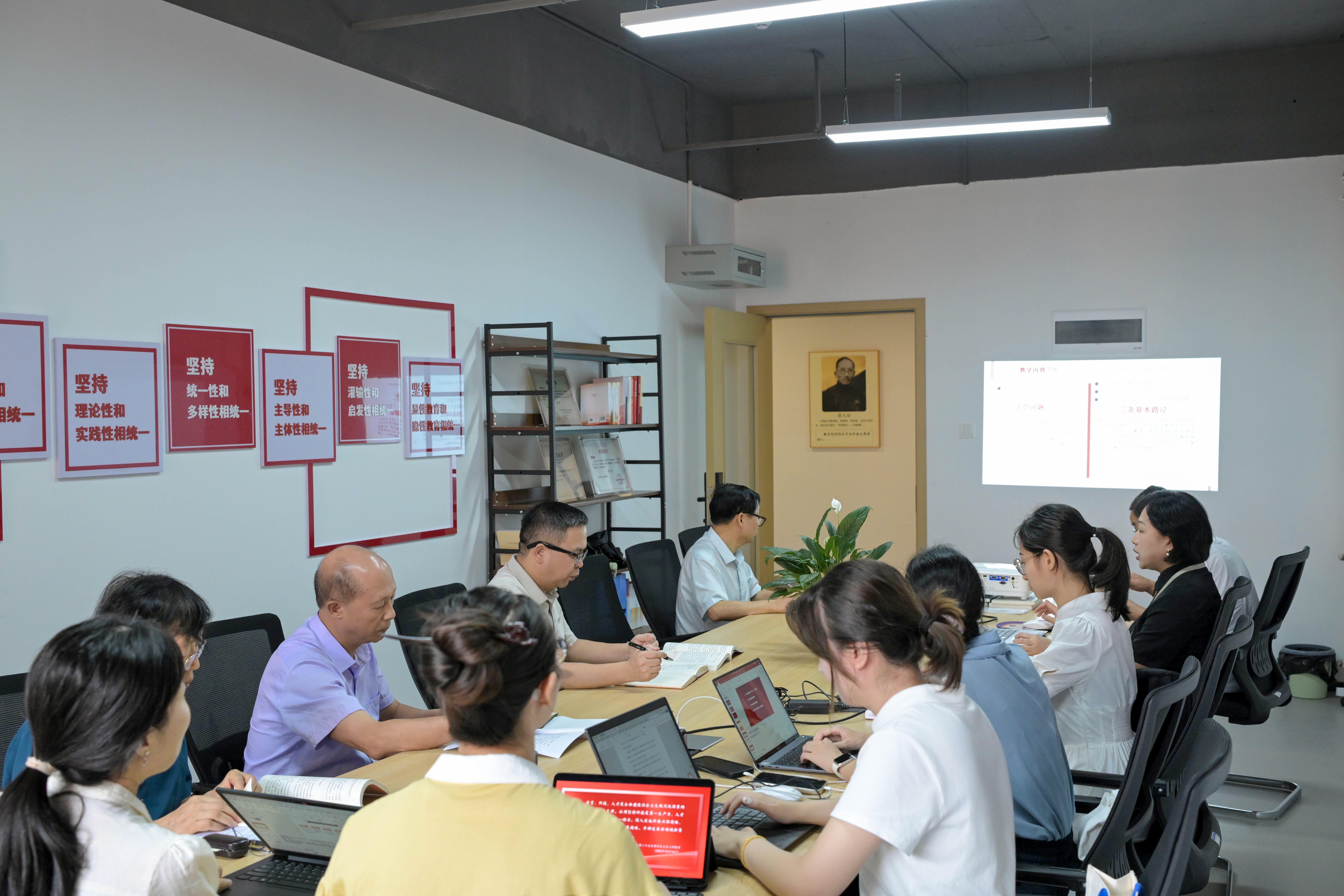 院长邱启照结合《习近平新时代中国特色社会主义思想概论》课程,对备课内容提出要求。他强调,要持续发挥集体备课优势,鼓励教师聚焦教学难点,通过团队协作推动教学能力提升,实现教学理念与模式的创新突破,进一步增强思政课的思想性、理论性和亲和力,确保习近平新时代中国特色社会主义思想真正入脑入心。