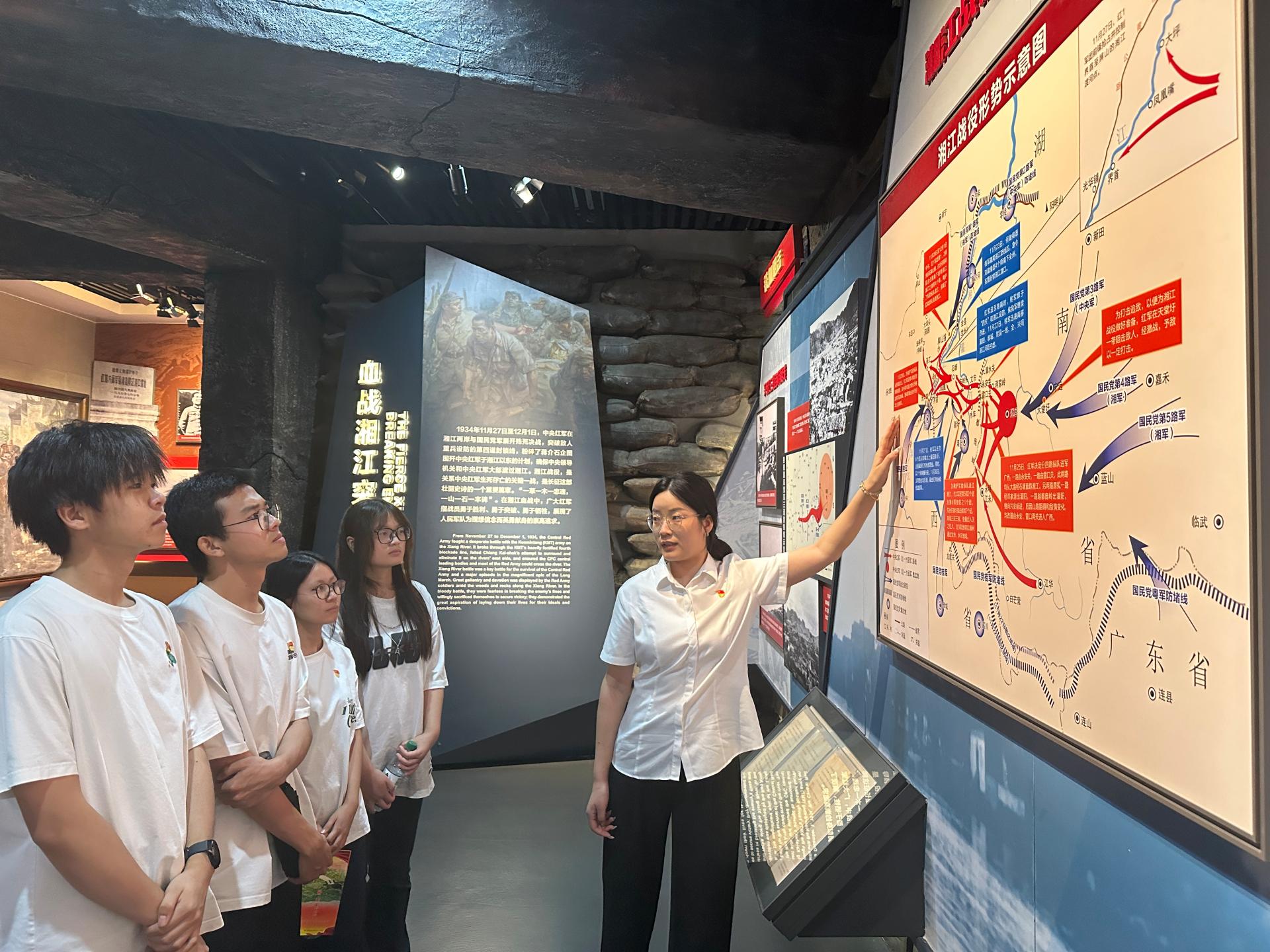 活动的首站是毛竹山村,师生们共同参观了党建引领乡村振兴文化长廊,深入了解毛竹山村的发展历程以及基层党组织在乡村振兴中的战斗堡垒作用。在参观过程中,大家认识到党员干部扎根基层、服务群众的重要责任与担当,从而为后续的廉洁教育奠定了坚实的思想基础。随后,师生们前往红军长征湘江战役纪念馆参观。五位老师结合馆内展品,通过“草鞋”和“十六两称”等红色小故事,为学生们上了一堂生动的廉洁教育课。