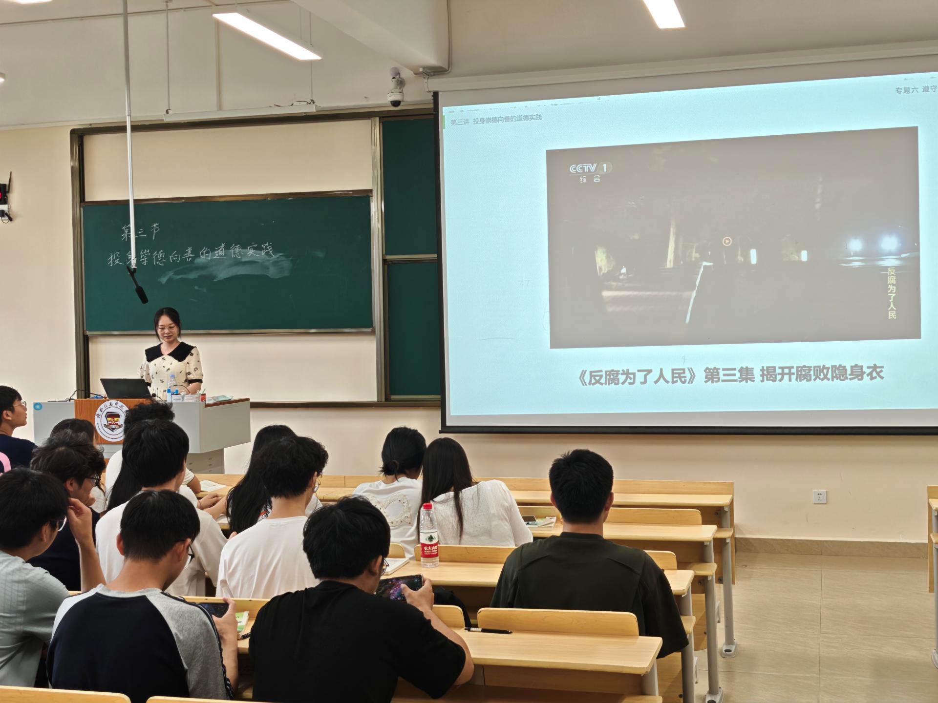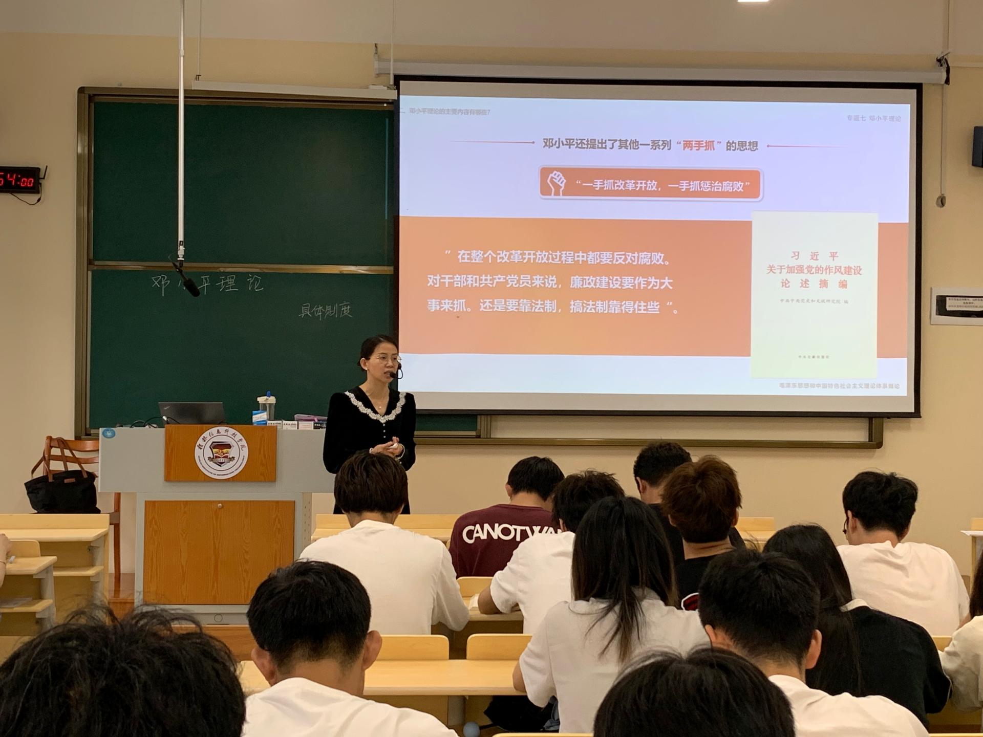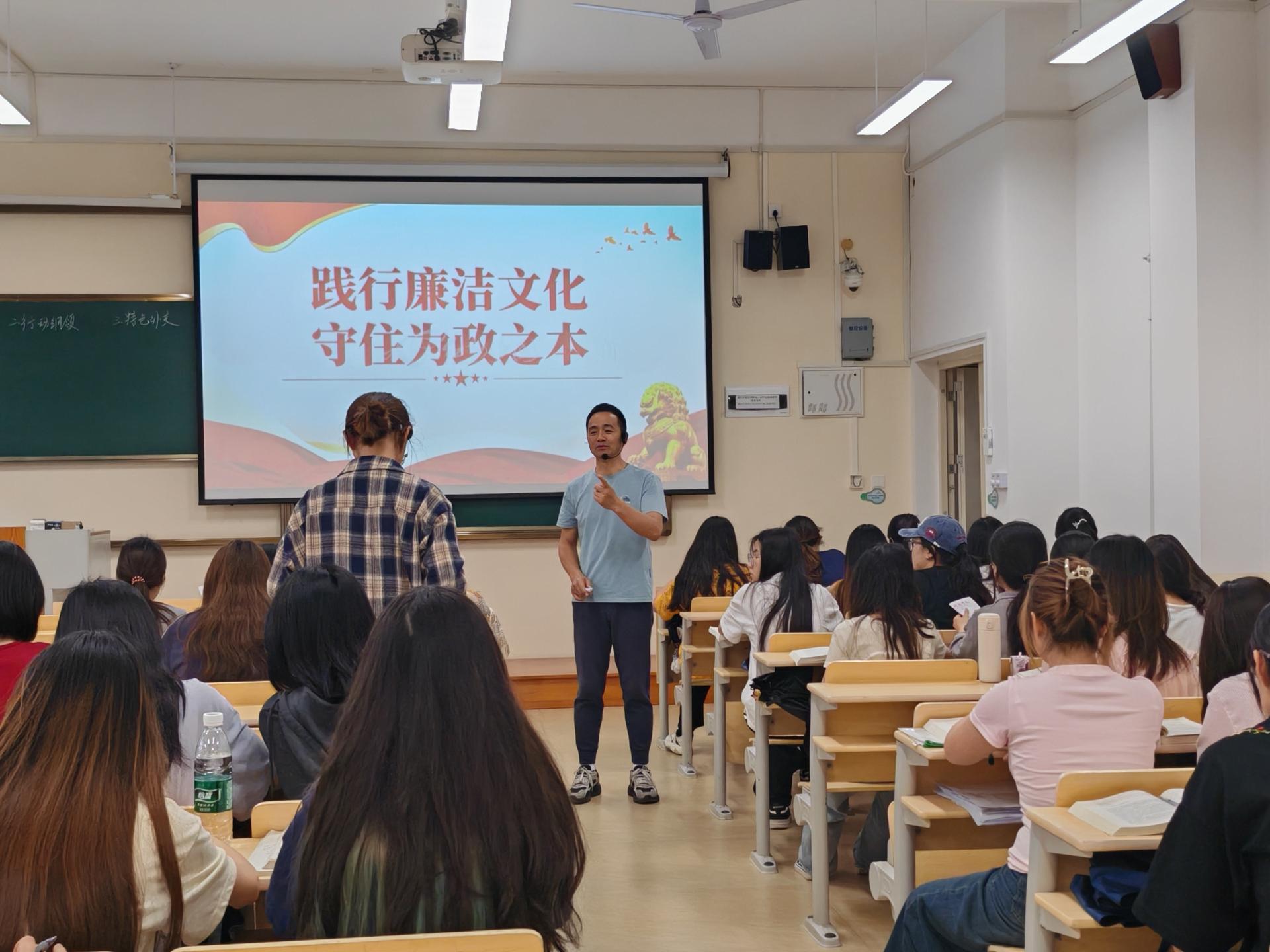 各党支部充分发挥思政课程优势,以《习近平新时代中国特色社会主义思想概论》《毛泽东思想和中国特色社会主义理论体系概论》《思想道德与法治》等核心课程为载体,系统融入廉洁教育内容。在理论教学方面,吴敏波老师通过“深圳速度与廉洁底线并重”等典型案例,深入剖析反腐败斗争与经济社会发展的辩证关系;何亚慧老师则重点解读邓小平理论中“两手抓两手都要硬”的重要思想,特别是“一手抓改革开放,一手抓惩治腐败”的深刻内涵,帮助师生理解廉政建设对国家发展的重要性和必要性。在实践教学环节,学院创新开展“廉洁文化与青年使命”专题活动,组织学生研习“习近平用典中的廉洁智慧”,从“清廉是福、贪欲是祸”等经典论述中汲取精神养分。