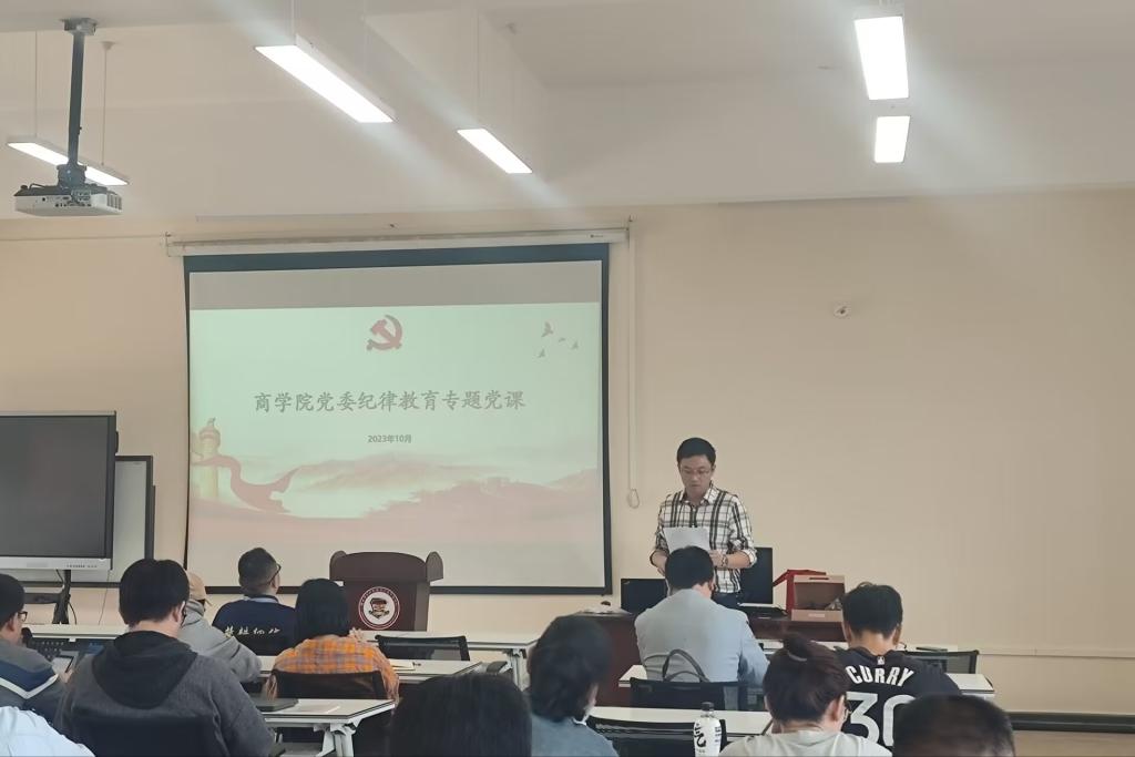 为深入推进党风廉政建设,提高党员党性修养,增强教职工纪律规矩意识,商学院党委于10月18日在博文楼F407开展以“筑牢思想防线,弘扬清廉之风”为主题的纪律教育党课,由学院党委书记许奇主讲,全院教职工党员参加会议。