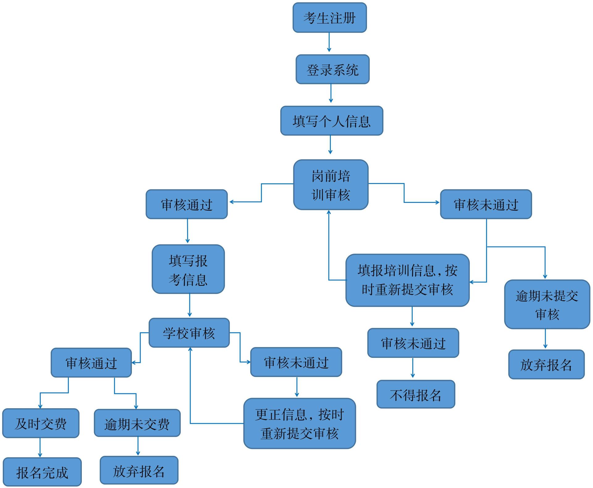 2.报名资格审核结果查询。考生提交报名信息后,一般48小时内反馈审核结果,考生需及时登录报名系统查询。审核通过的考生即可进行网上交费完成报名;审核不通过的考生须于报名资格审核截止时间(8月1日18:00)前更正信息并重新提交报名,直至审核通过进行交费方能完成报名。