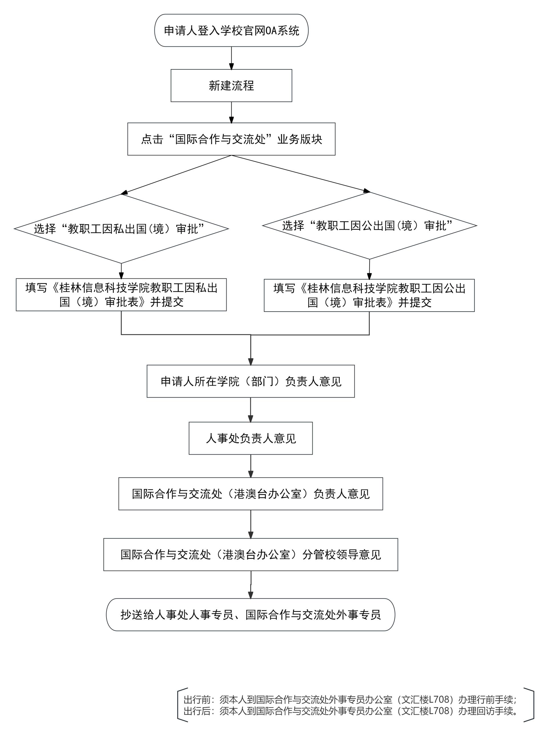 太阳集团tcy8722网站教职工因公/私出国(境)报备、审批流程图