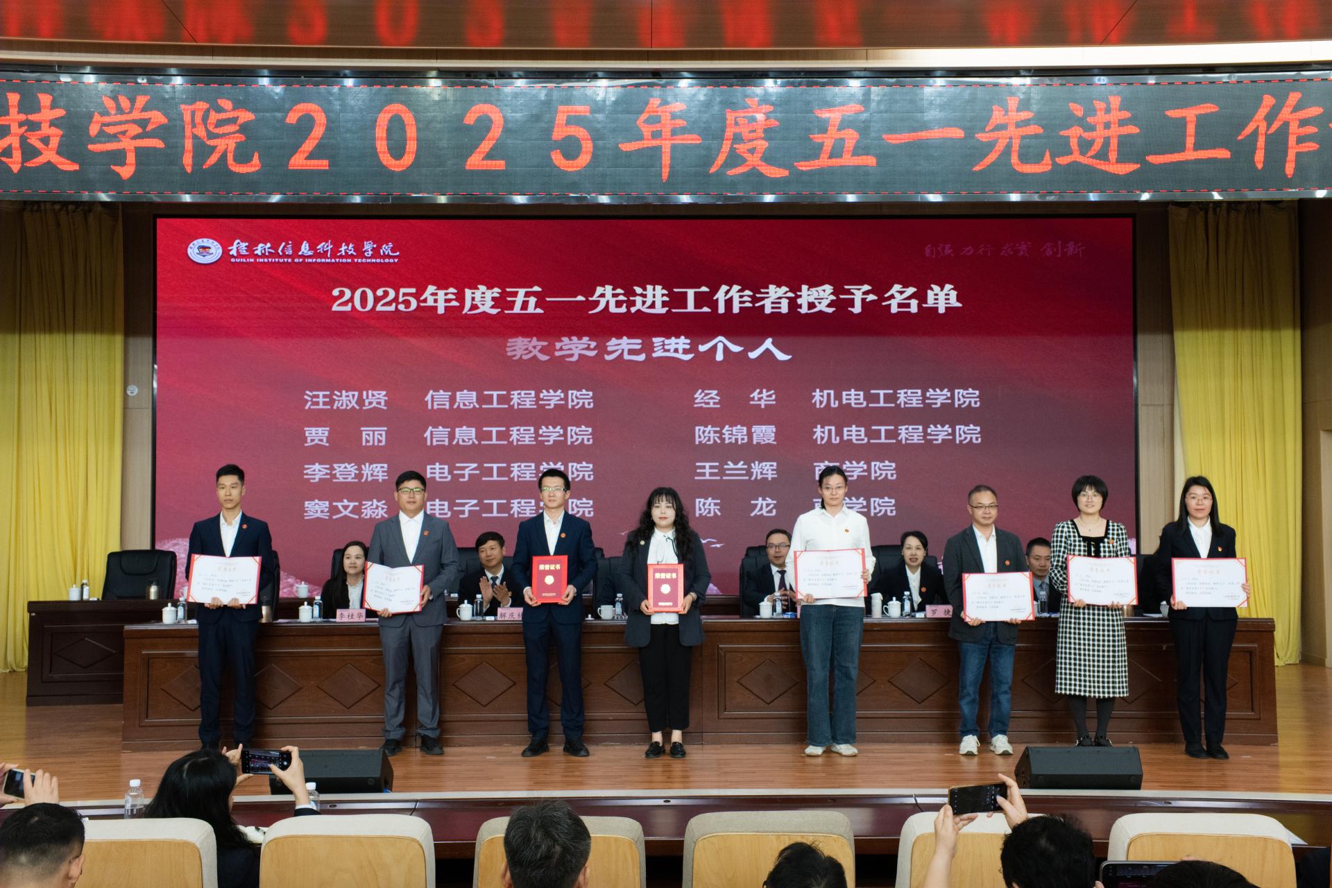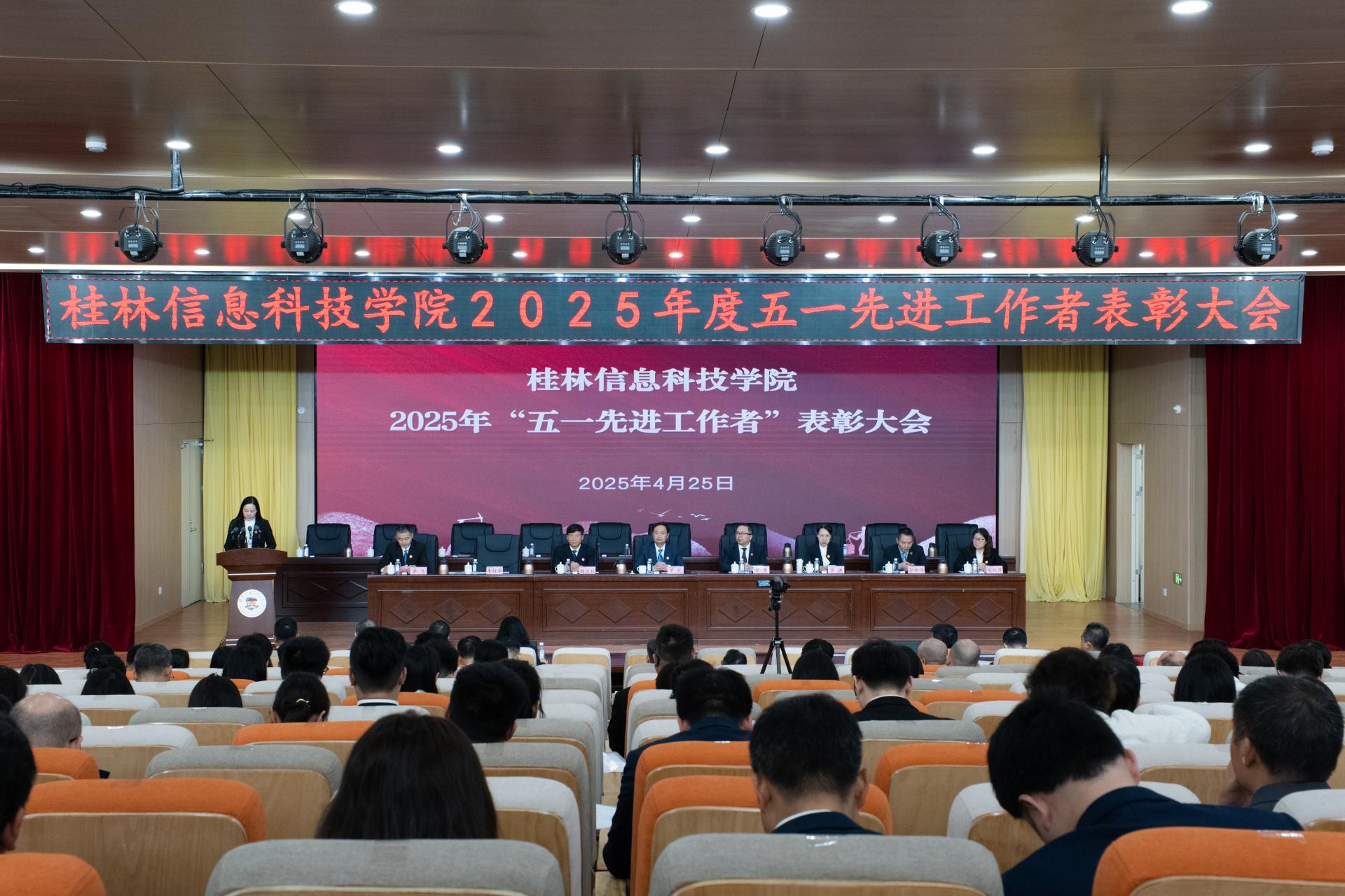 表彰大会上,副校长李桂华宣读2025年度“五一先进工作者”表彰决定,并高度肯定了受表彰教职工在过去一年中取得的成绩和付出的努力。同时向辛勤耕耘在教育一线的全校教职工致以崇高的敬意和衷心的问候,希望大家勇于创新、笃行实干,努力培养高素质应用型人才。