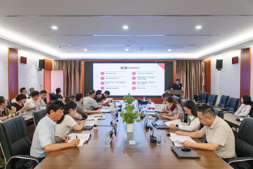 外贸与外语学院院长王家年汇报“国际服务与贸易专业集群”,整合国际商务等5个专业构建“外语+外贸+数智”生态,3年内拟建设RCEP数字贸易微专业,实现与东盟高校学分互认。