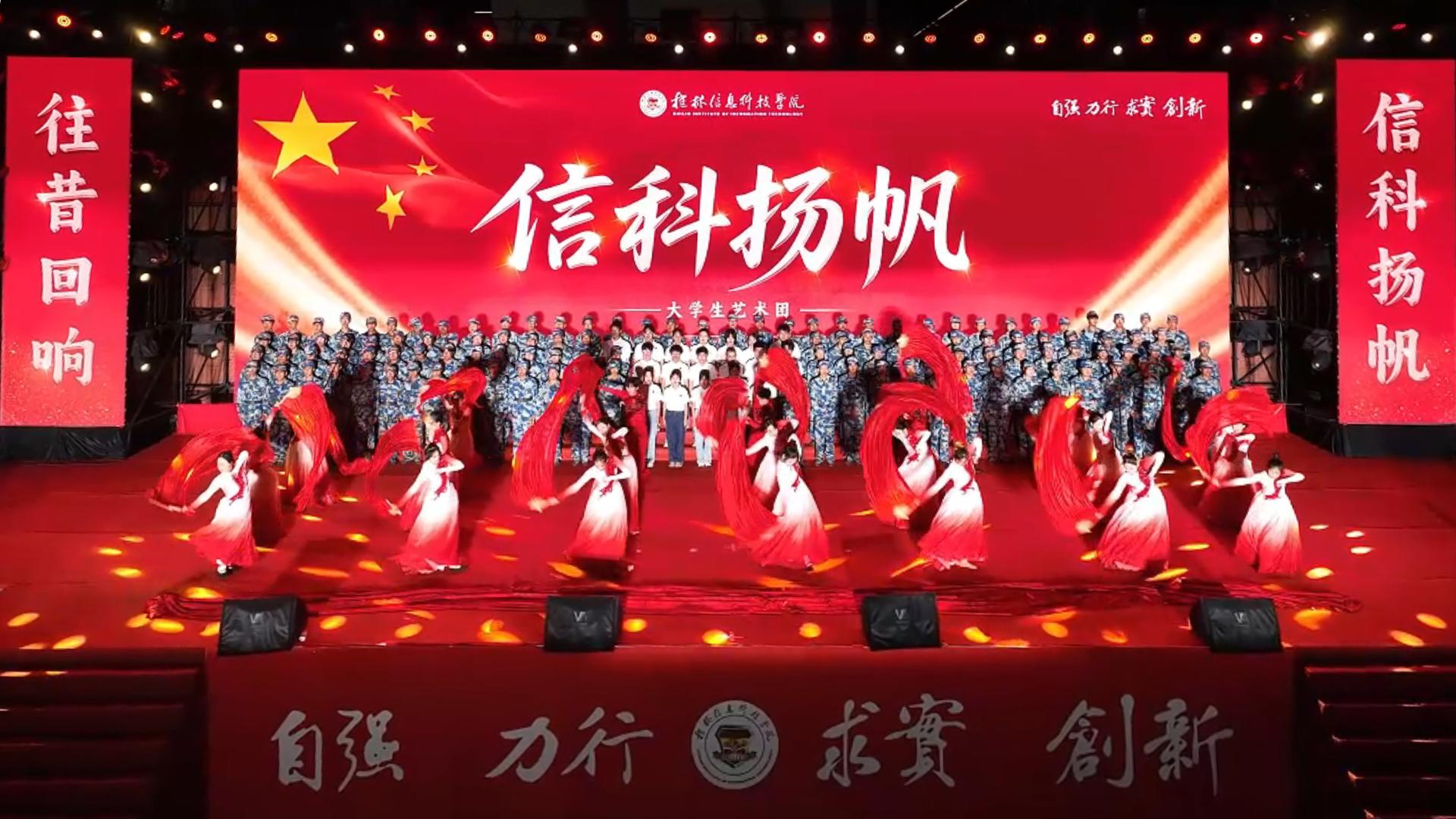 学校大学生艺术团与一营一连默契携手,联袂献上《灯火里的中国》与《信科扬帆》的精彩联唱,将现场气氛推向了最高潮。