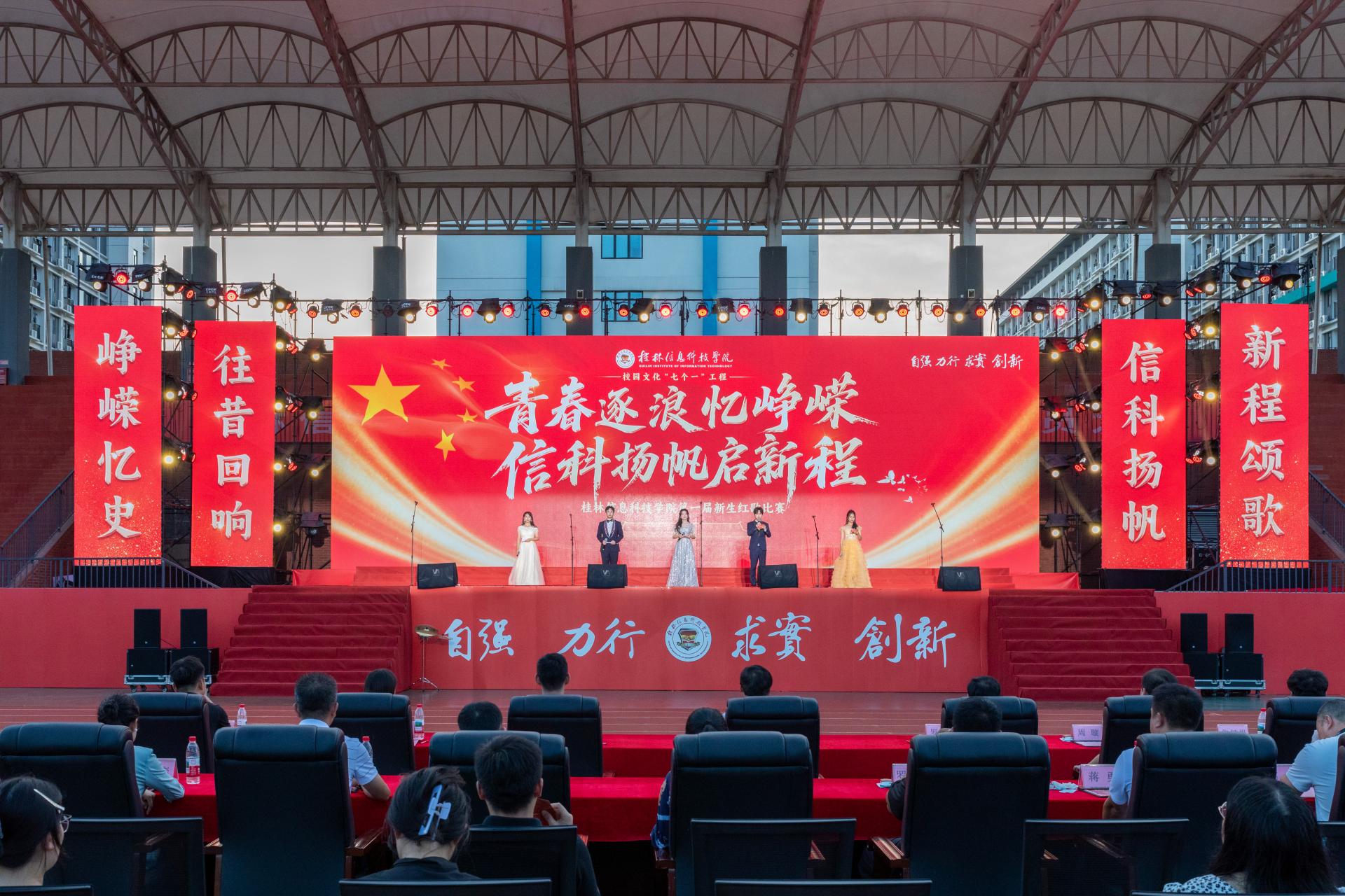 为纪念中国人民抗日战争暨世界反法西斯战争胜利80周年,传承红色基因,厚植家国情怀,推进校园文化“七个一”工程建设,9月11日晚,学校在田径场举办了一场以“青春逐浪忆峥嵘,信科扬帆启新程”为主题的新生红歌比赛。学校董事长罗欣,校长解庆林,纪委书记、校长助理周璇出席活动,相关职能部门、各二级学院党组织及团组织负责人和学生代表4000余人参加活动。