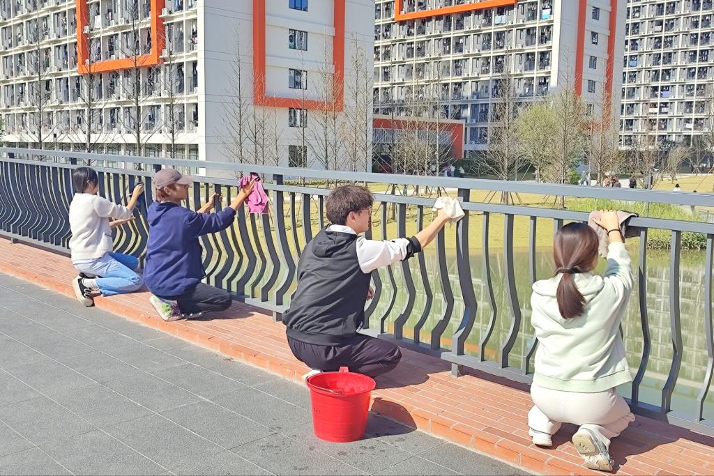 活动过程中,各位党员奋勇当先,不怕脏、不怕累,对太阳集团博雅桥及周围进行彻底清扫。擦拭栏杆、清理杂草、认真负责,同学们纷纷拿起自己的工具,迅速投入到劳动中,忙碌的身影为校园增添了—抹亮丽的色彩。经过两个小时的努力劳动,博雅桥以及周围环境干净整洁,清爽明朗。